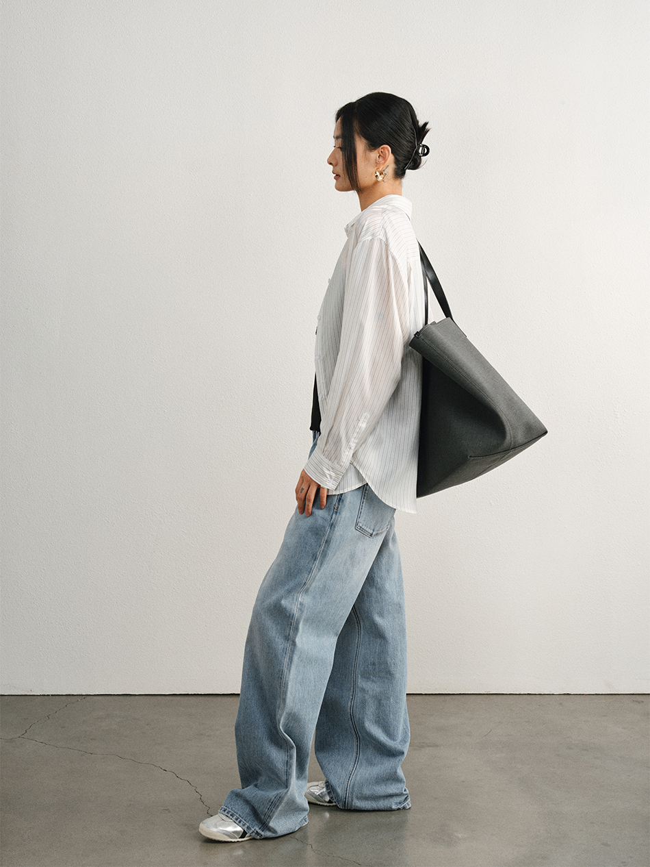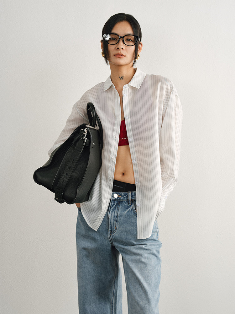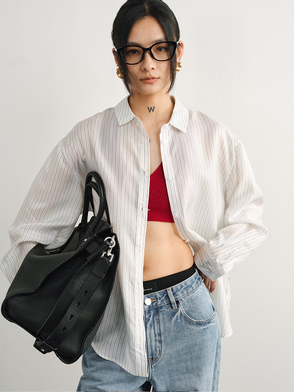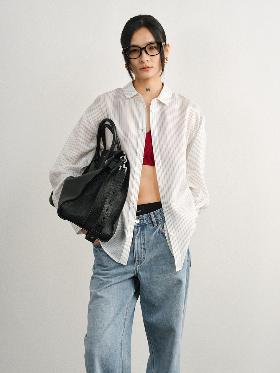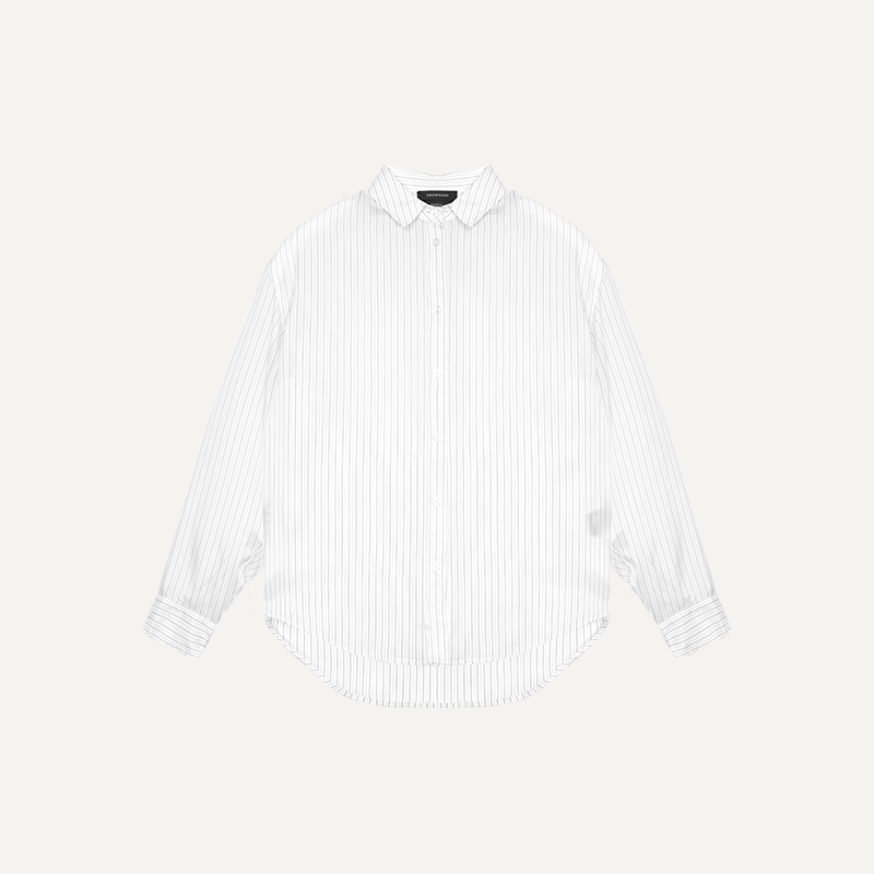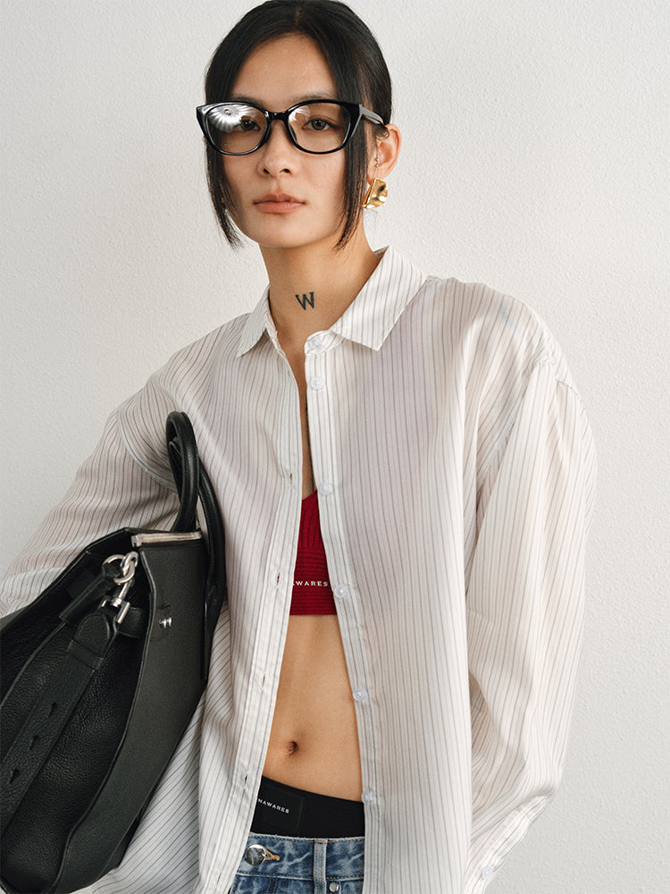 [UNAWARES] Thin Transparent Cuprammonium Striped Long Sleeve Shirt
