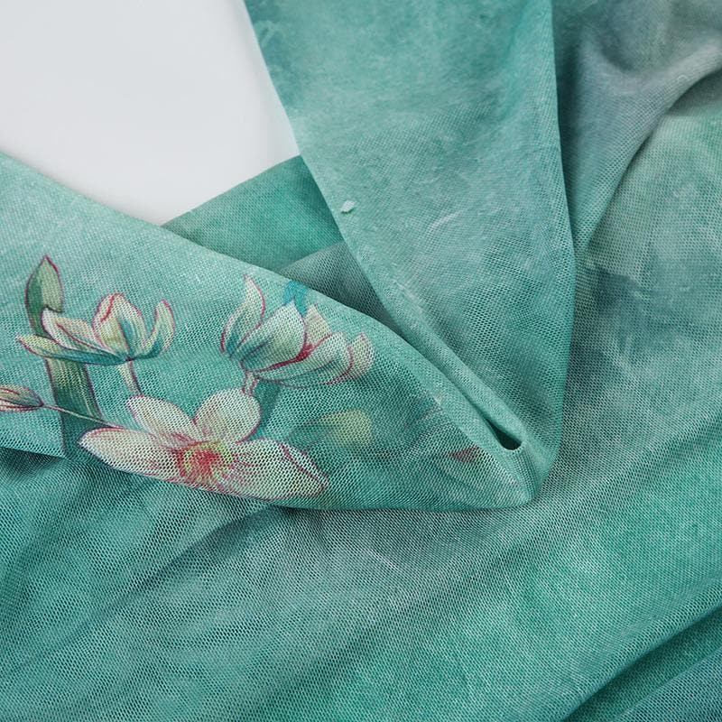 Cowl neck mesh butterfly print ruched cami maxi dress