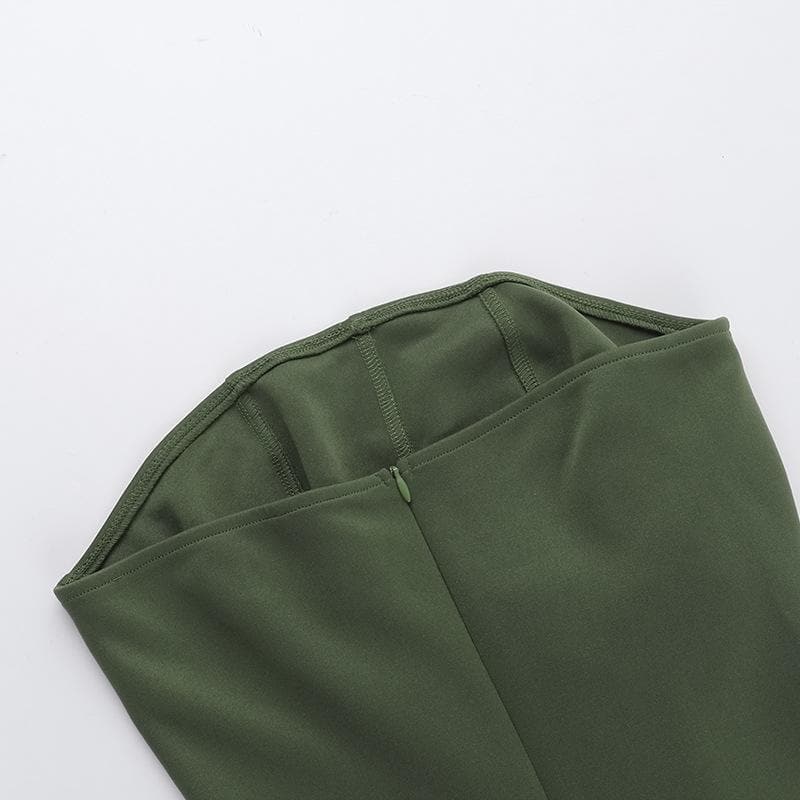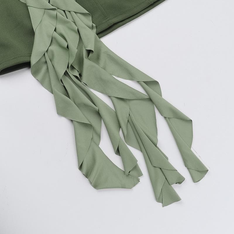 Flower applique ruffle zip-up tube mini dress