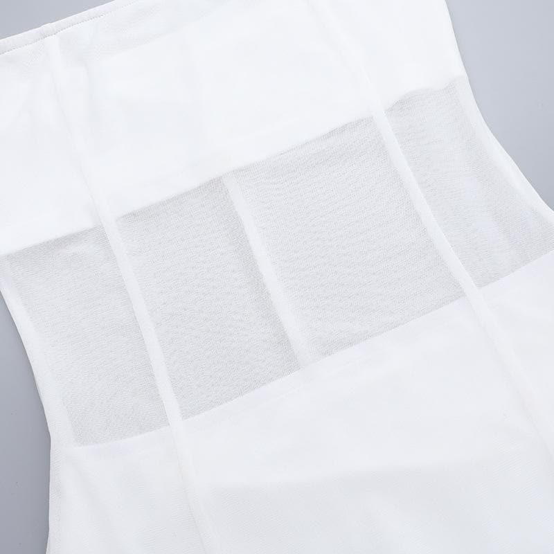 Mesh patchwork solid stitch tube maxi dress