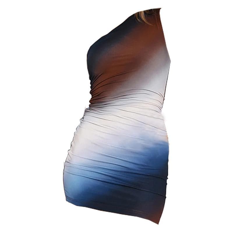 One shoulder ruched print gradient mini dress