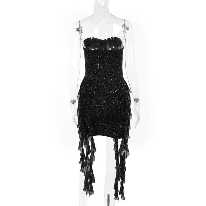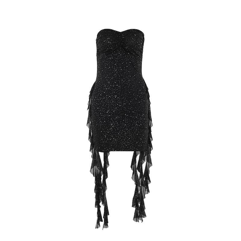 Ruffle ruched beaded sweetheart neck tube mini dress