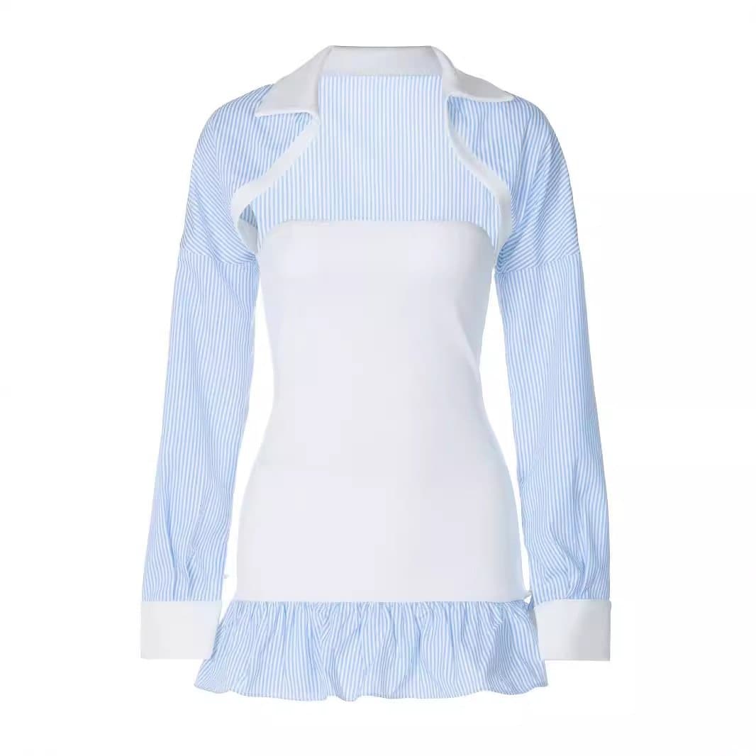 Long sleeve shrug striped print tube 2 piece mini dress