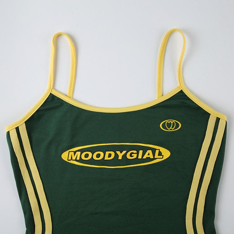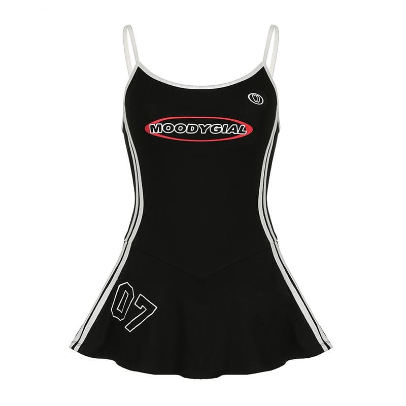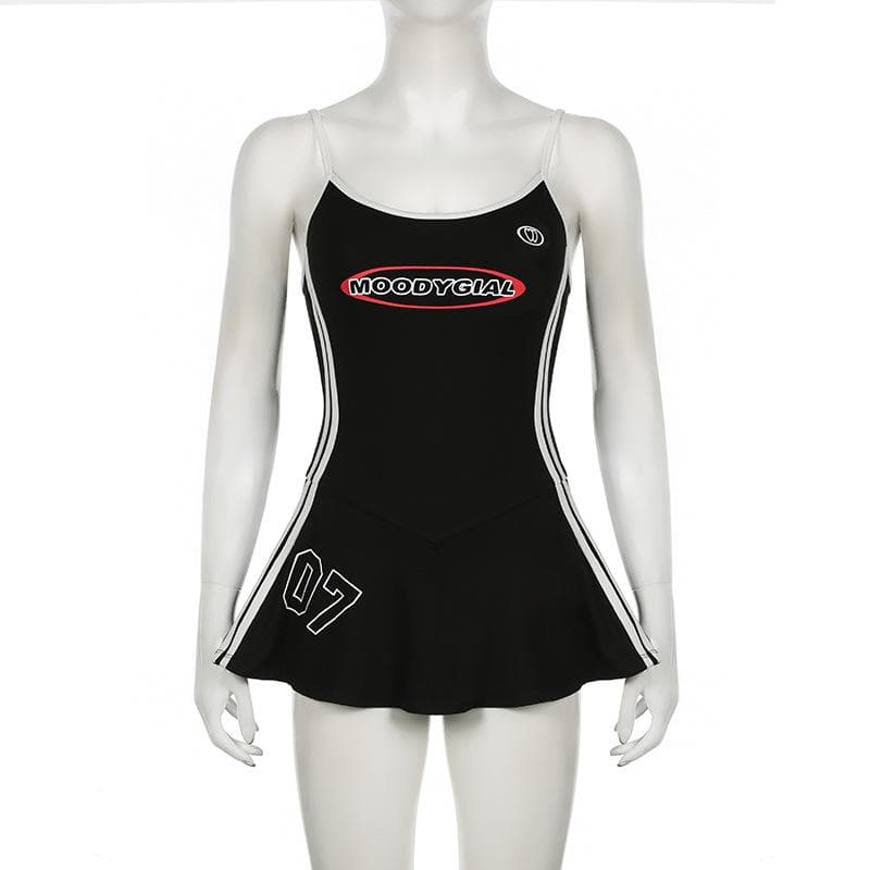 U neck letter pattern cami mini dress
