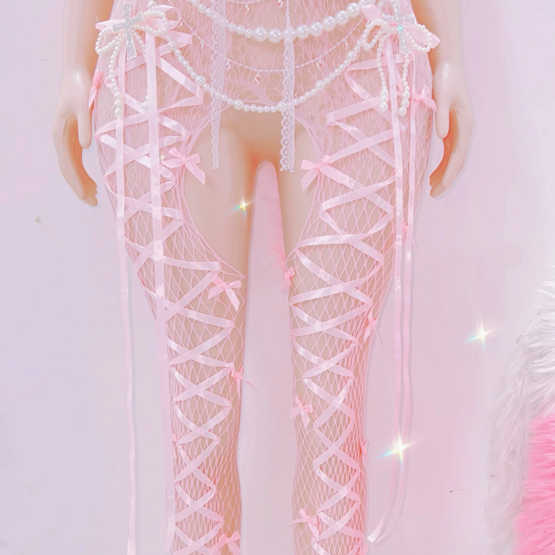 Bowknot feather hollow out ribbon jumpsuit