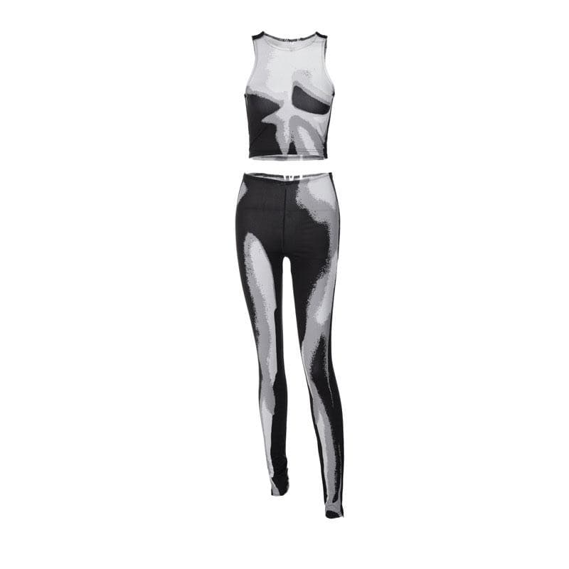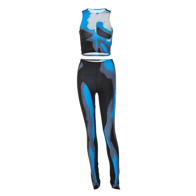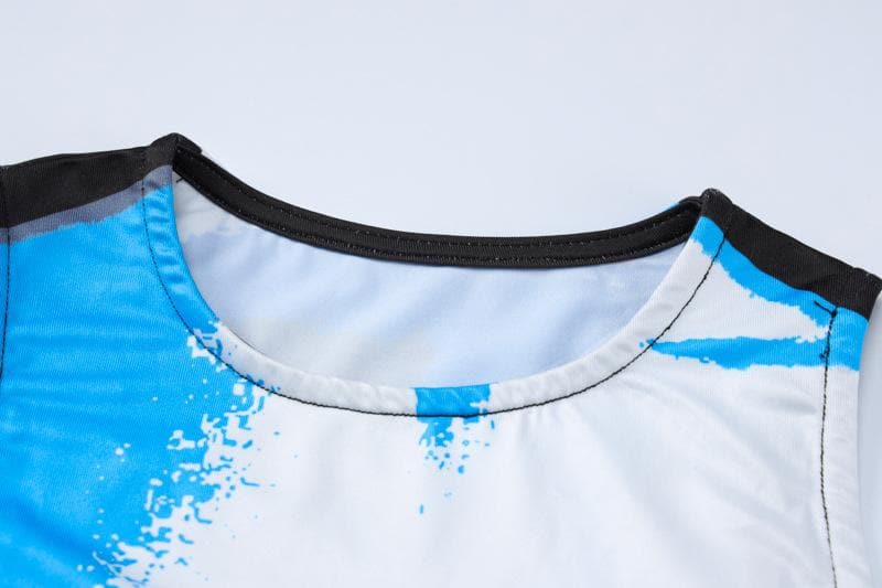 Contrast sleeveless stitch crewneck slit jumpsuit