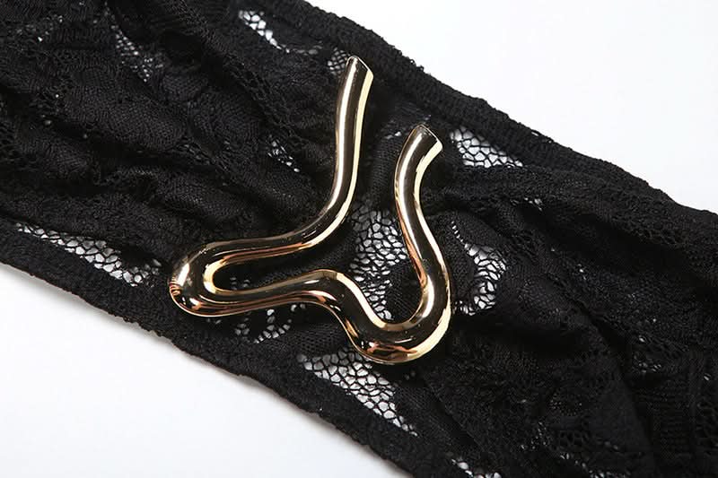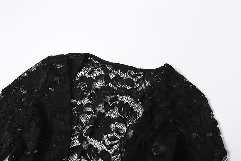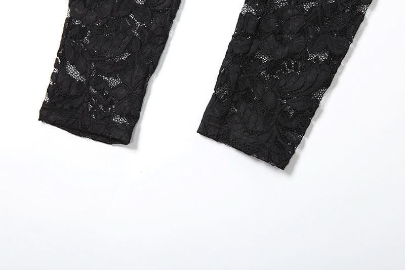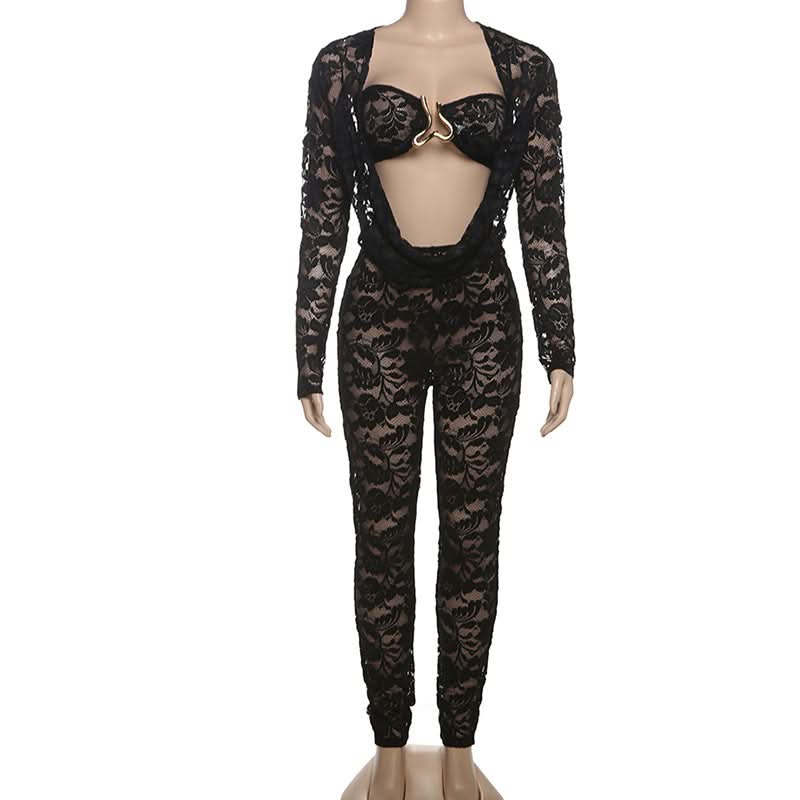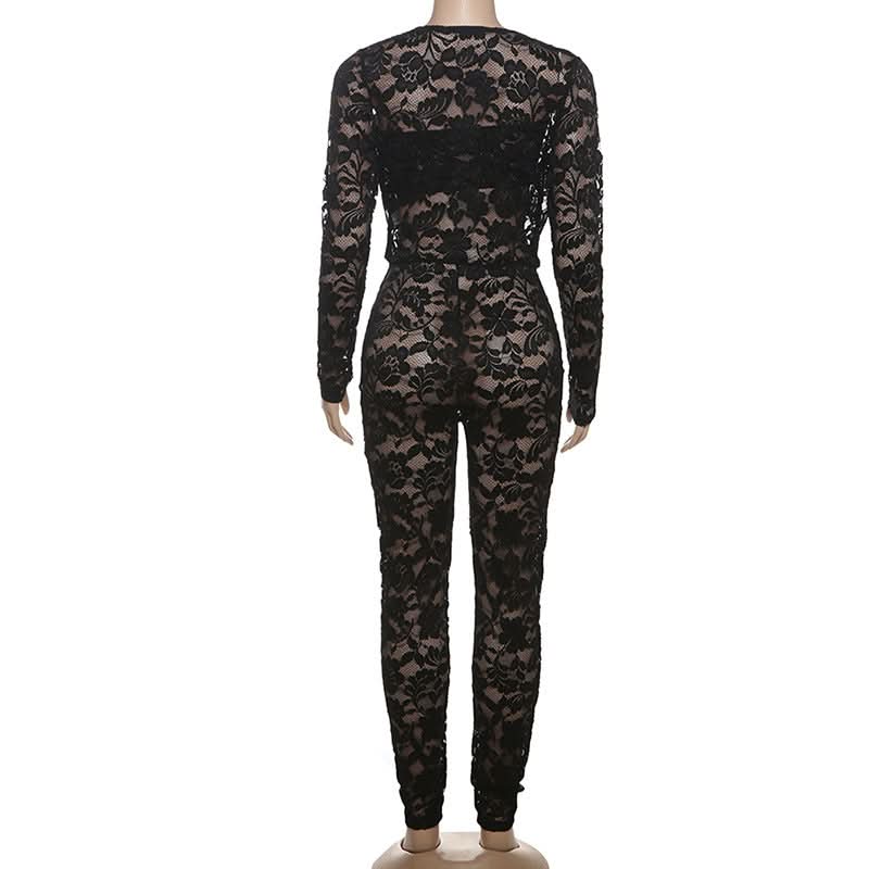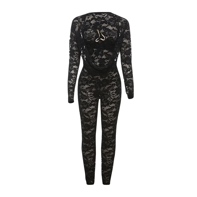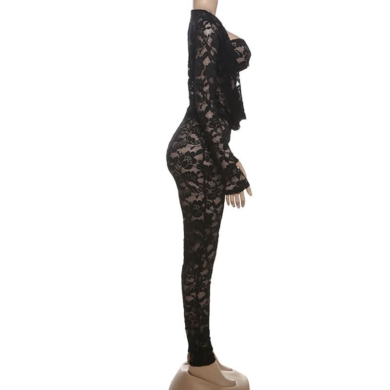 Long sleeve lace hollow out see through jumpsuit