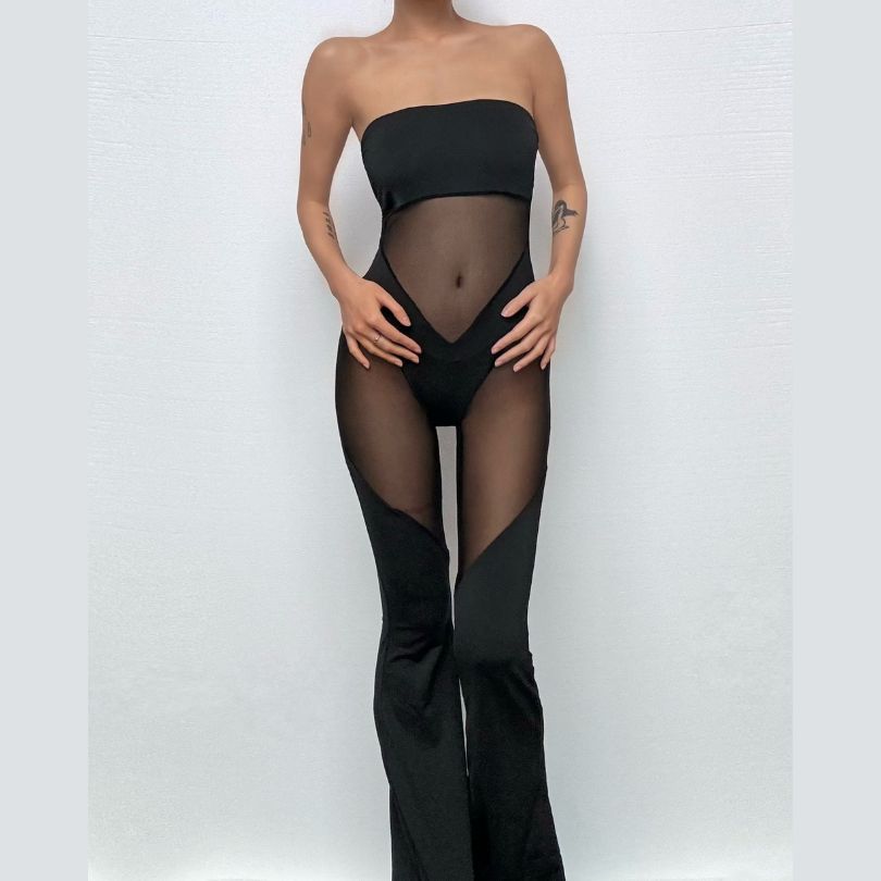Mesh patchwork backless tube jumpsuit