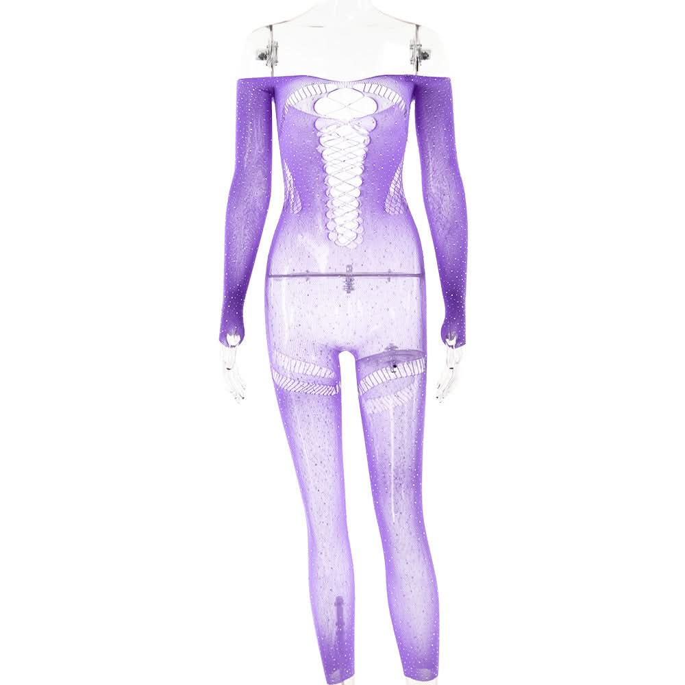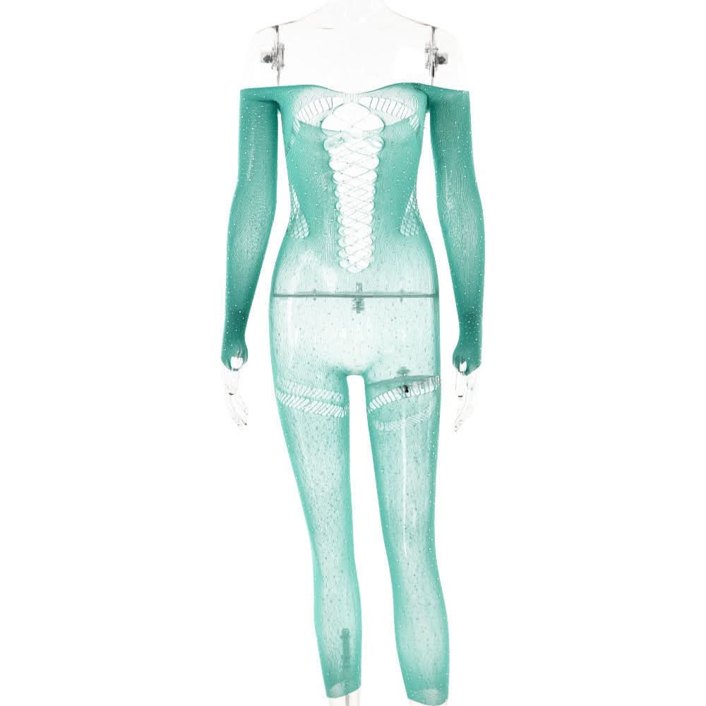 Off shoulder long sleeve beaded hollow out jumpsuit