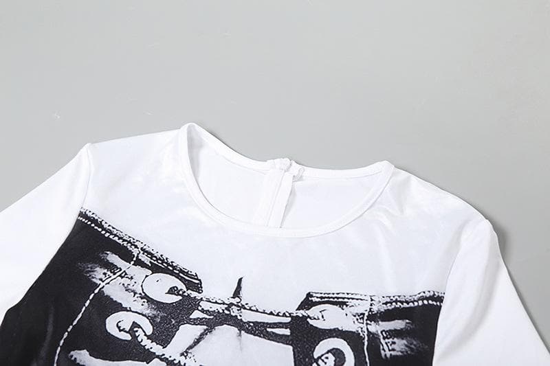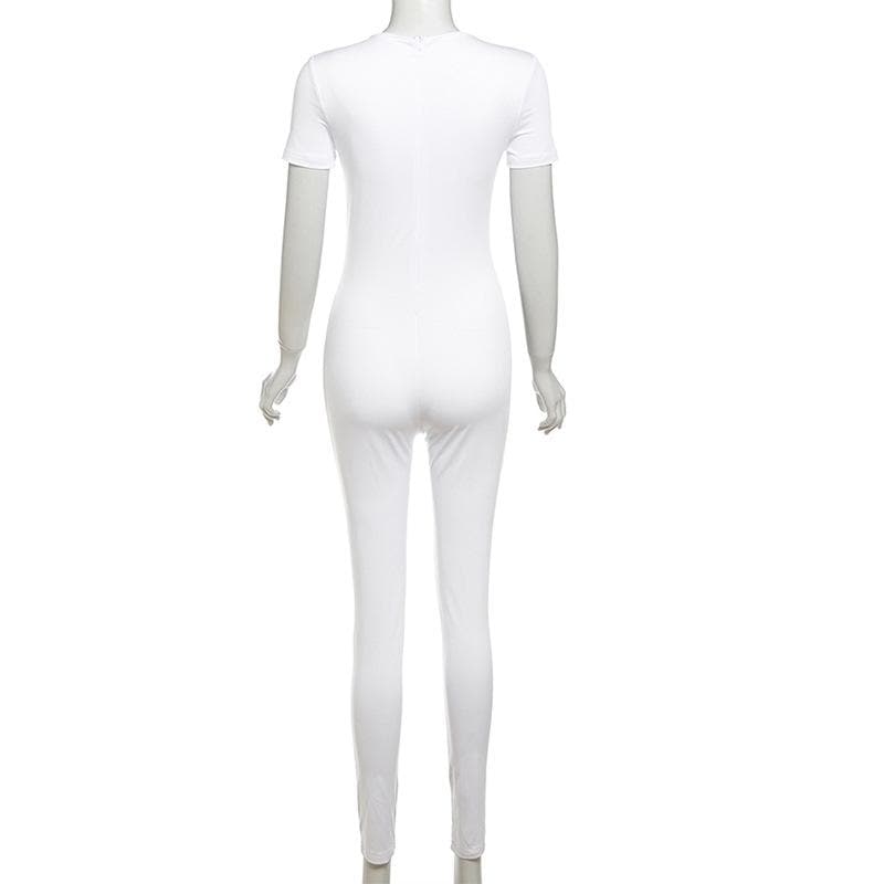 Short sleeve crewneck body print zip-up jumpsuit