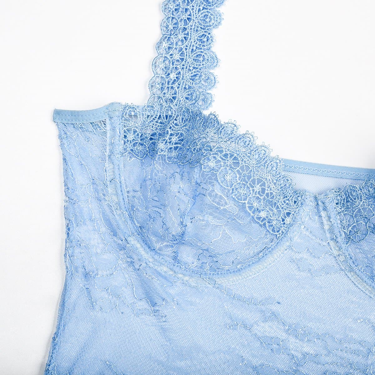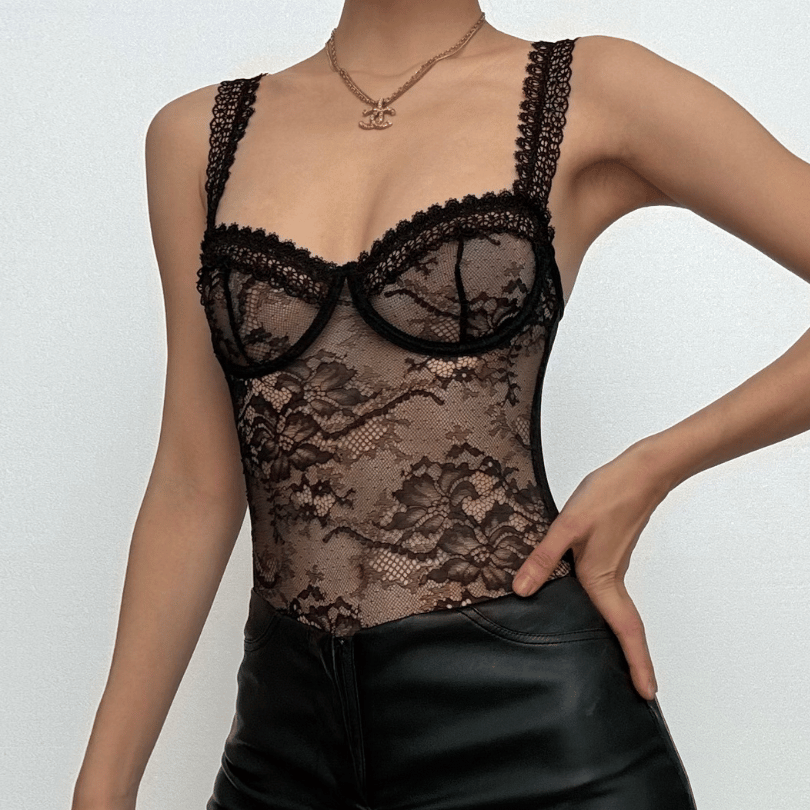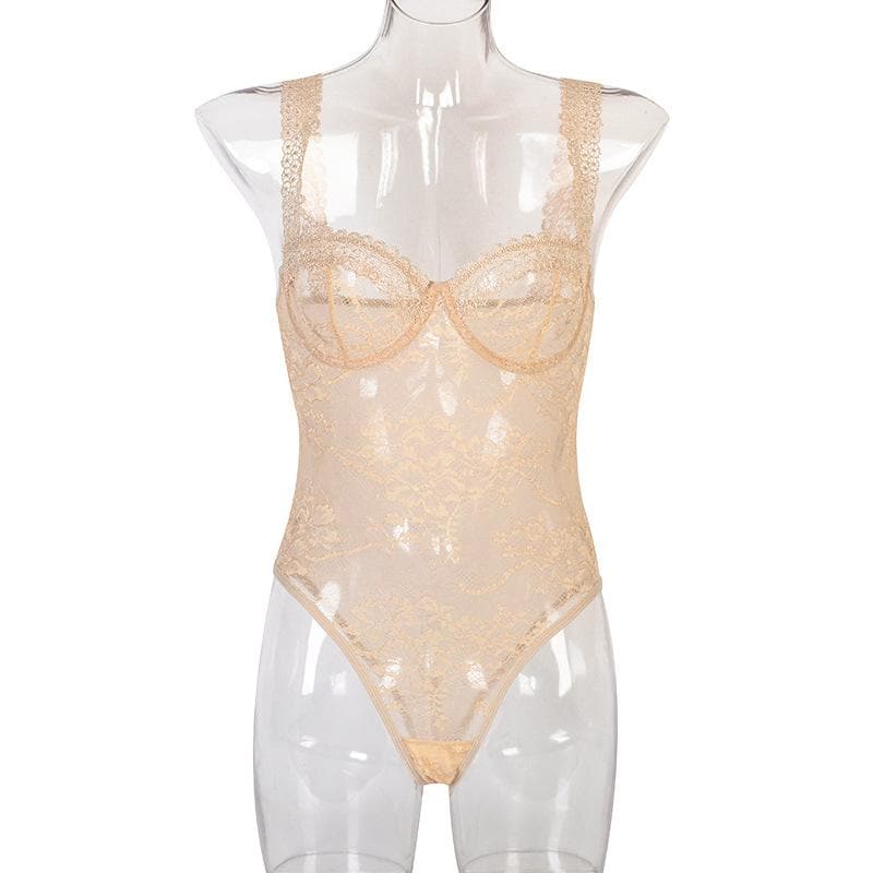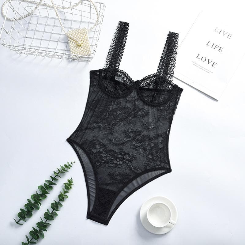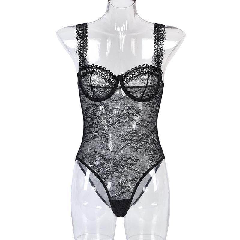 Sheer lace see through backless cami bodysuit