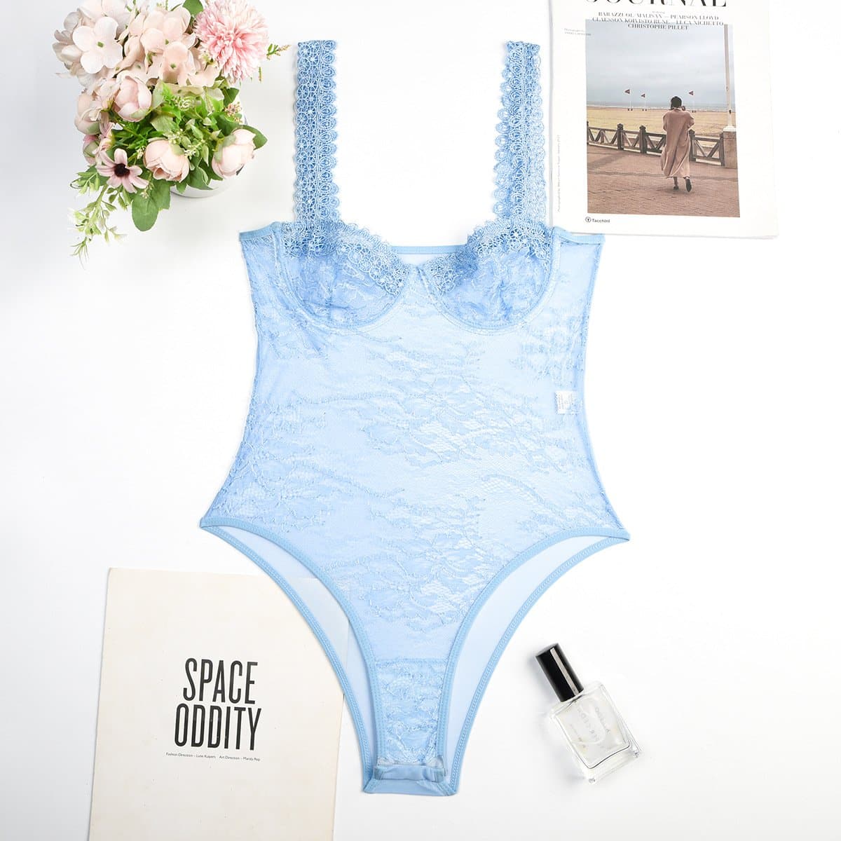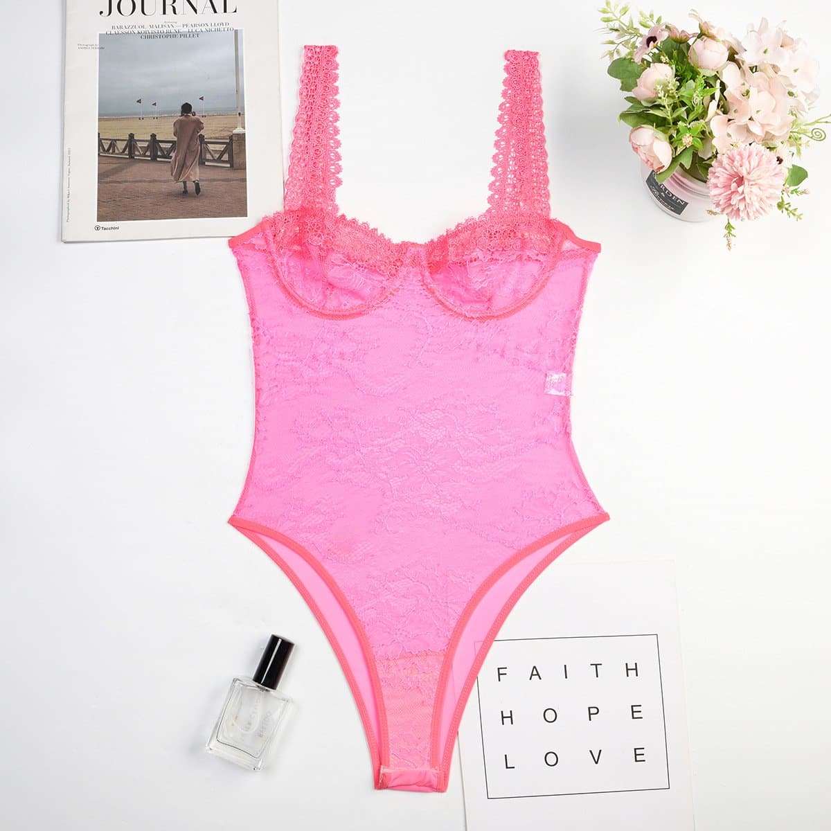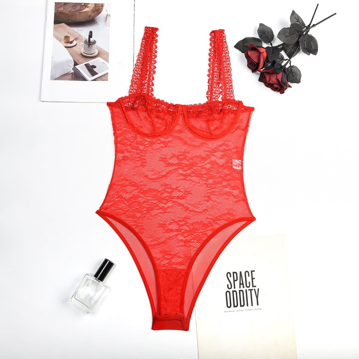Sheer lace see through backless cami bodysuit