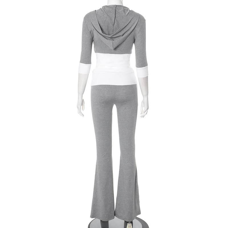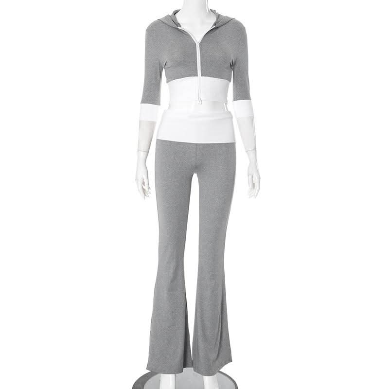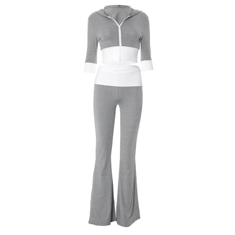 Hoodie zip-up contrast sports pants set
