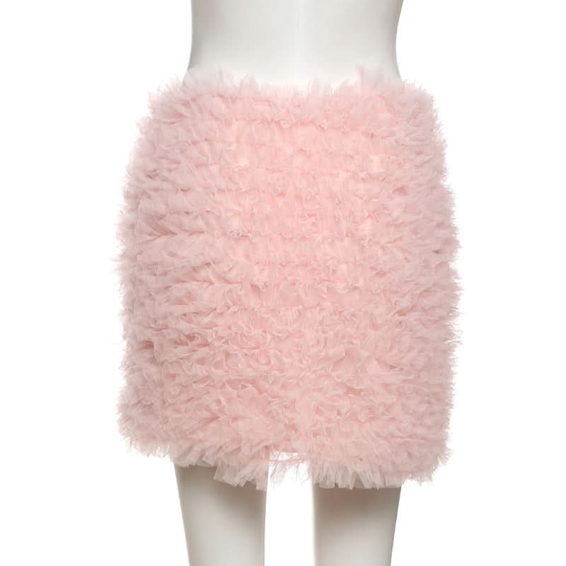 Fluffy ruffle zip-up mini skirt