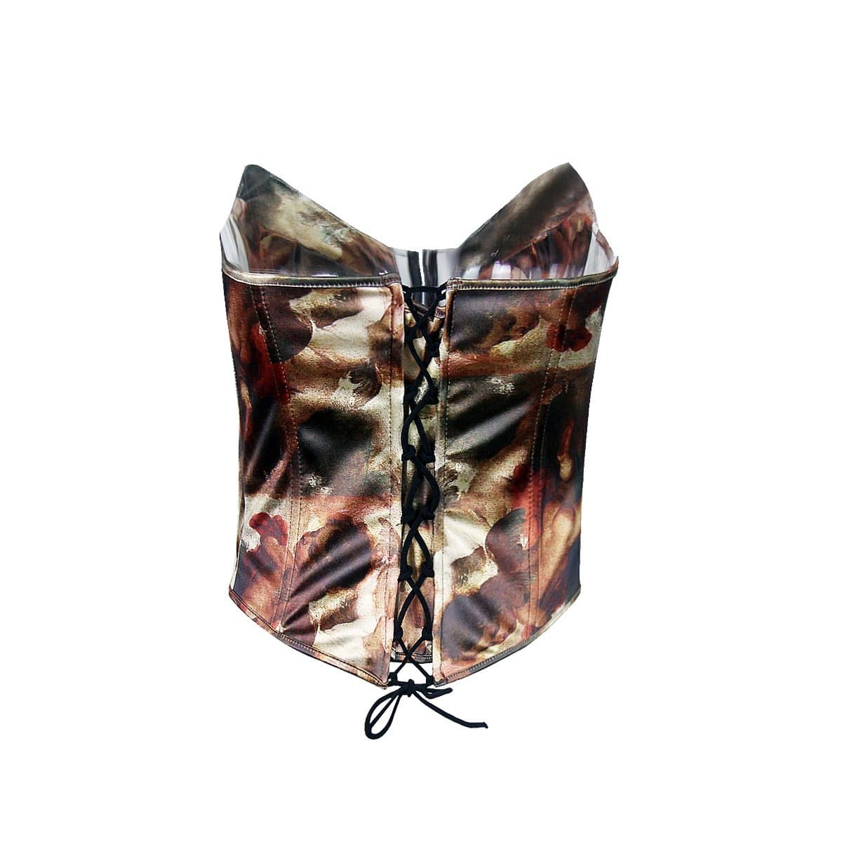 Lace up back button print heart neck bustier tube top