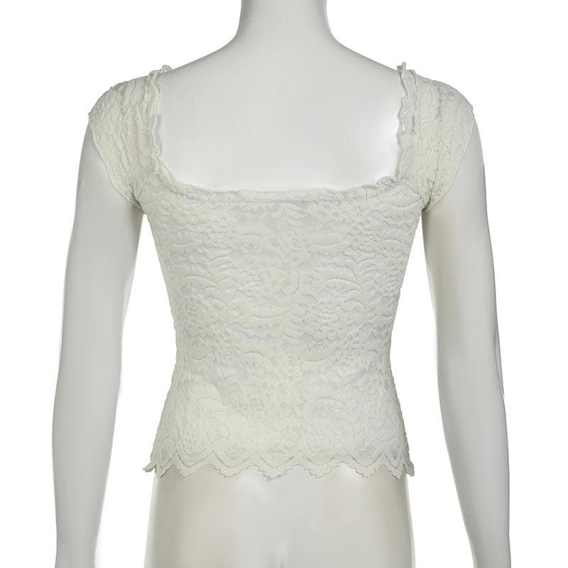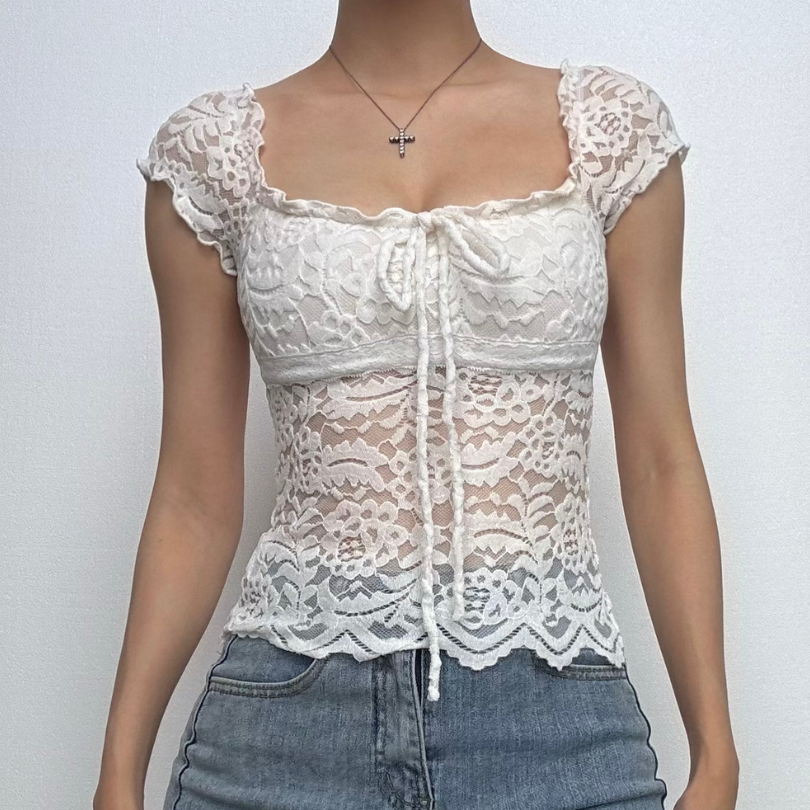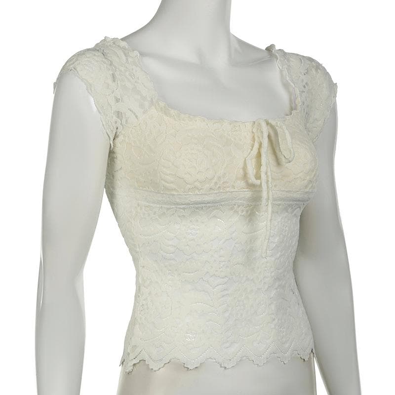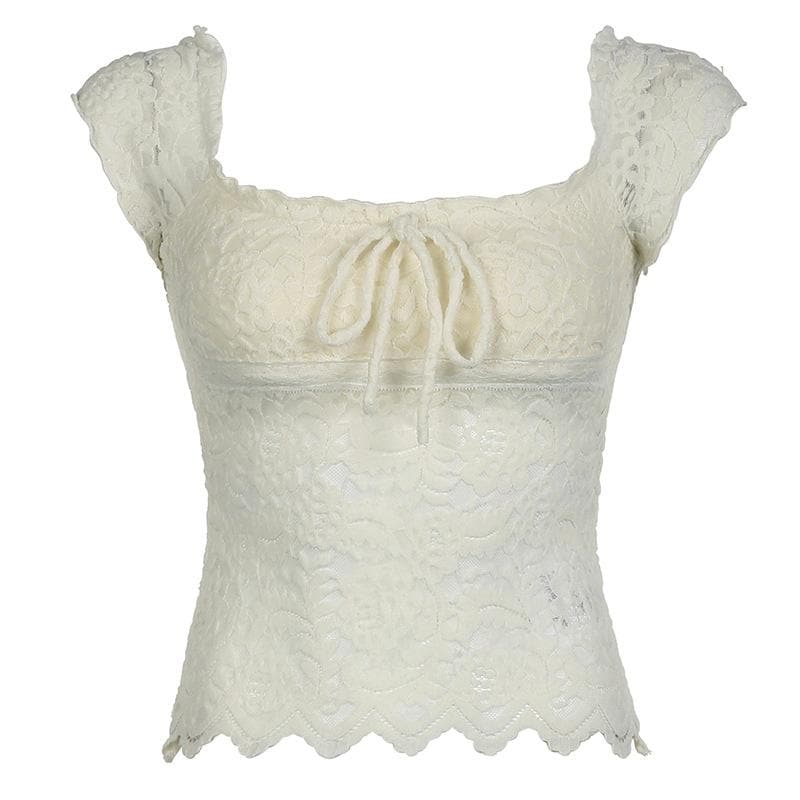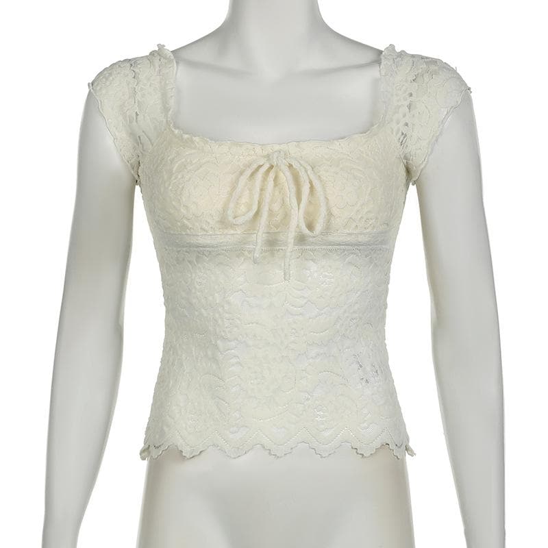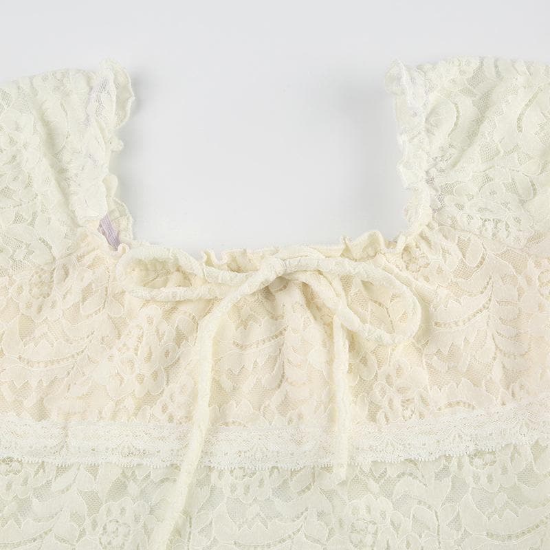Cap sleeve square neck bowknot lace ruffle top