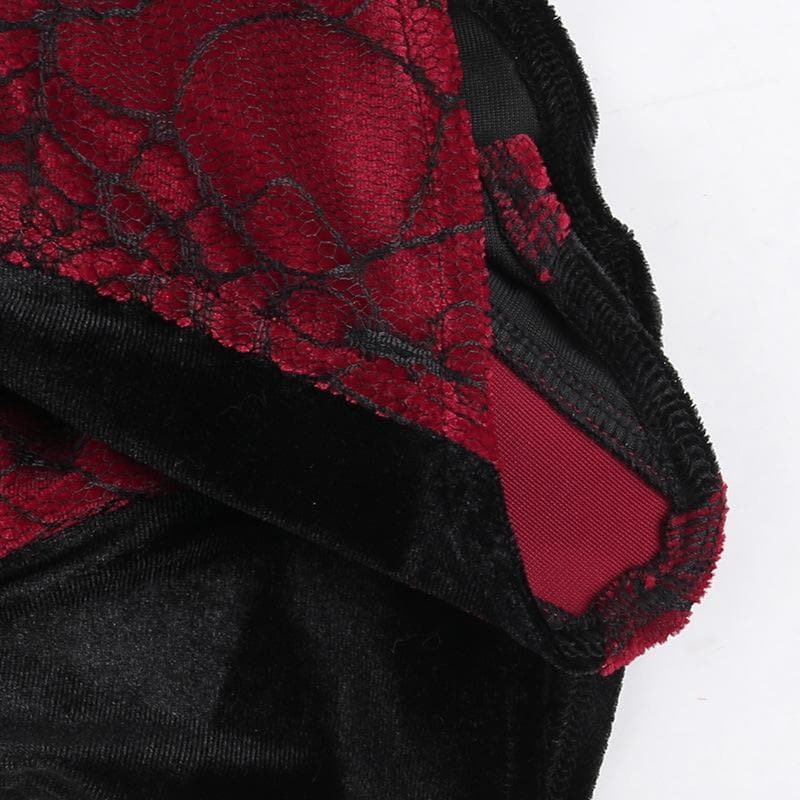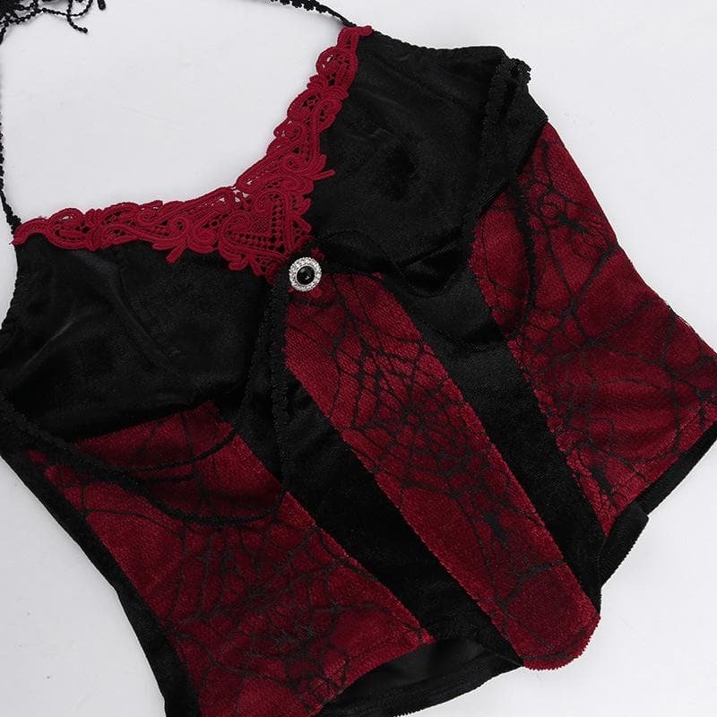 Contrast lace hem halter backless velvet corset top | victorian gothic dresses
