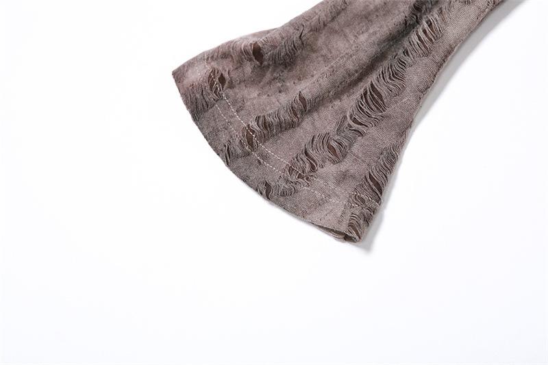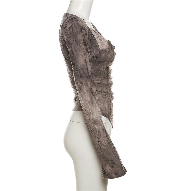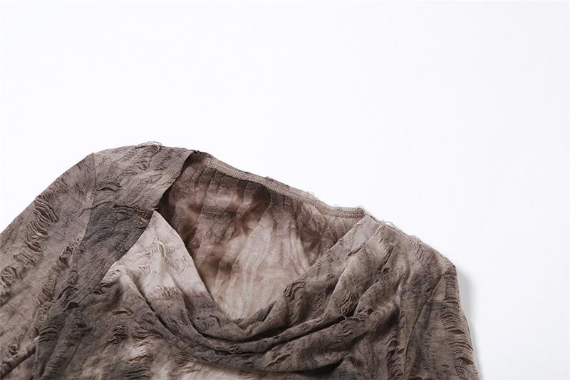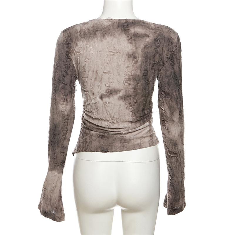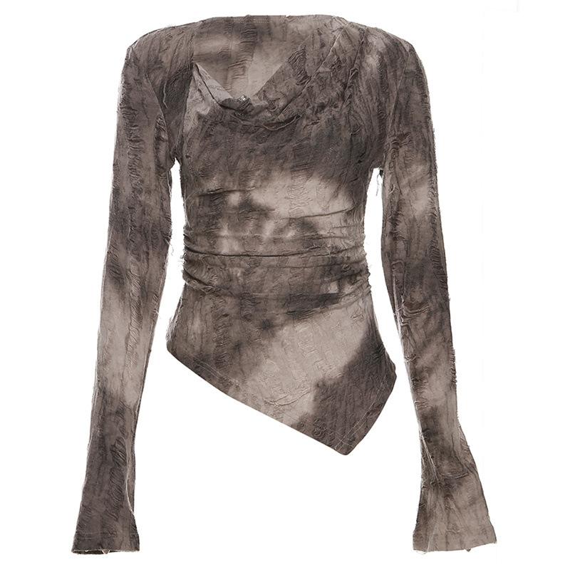 Cowl neck long flared sleeve tie dye ruched irregular top
