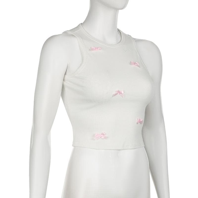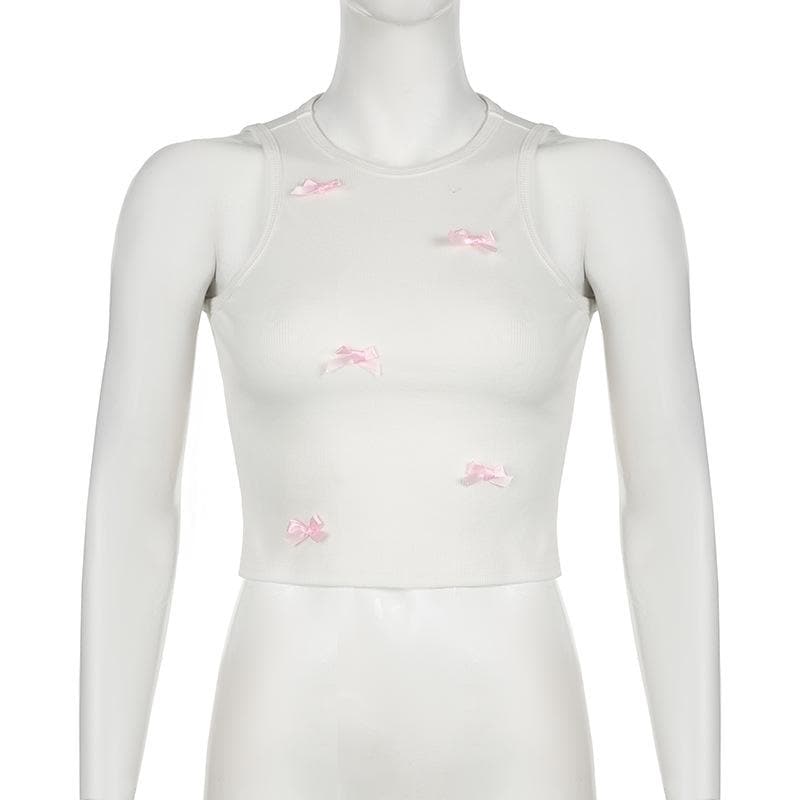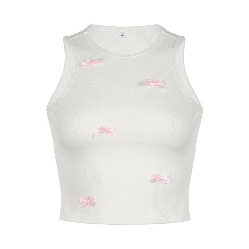 Crewneck bowknot ribbed sleeveless tank top