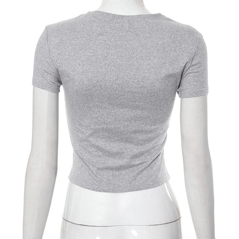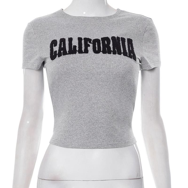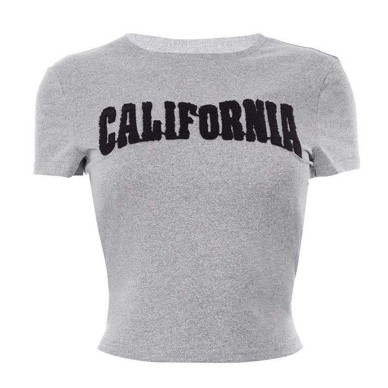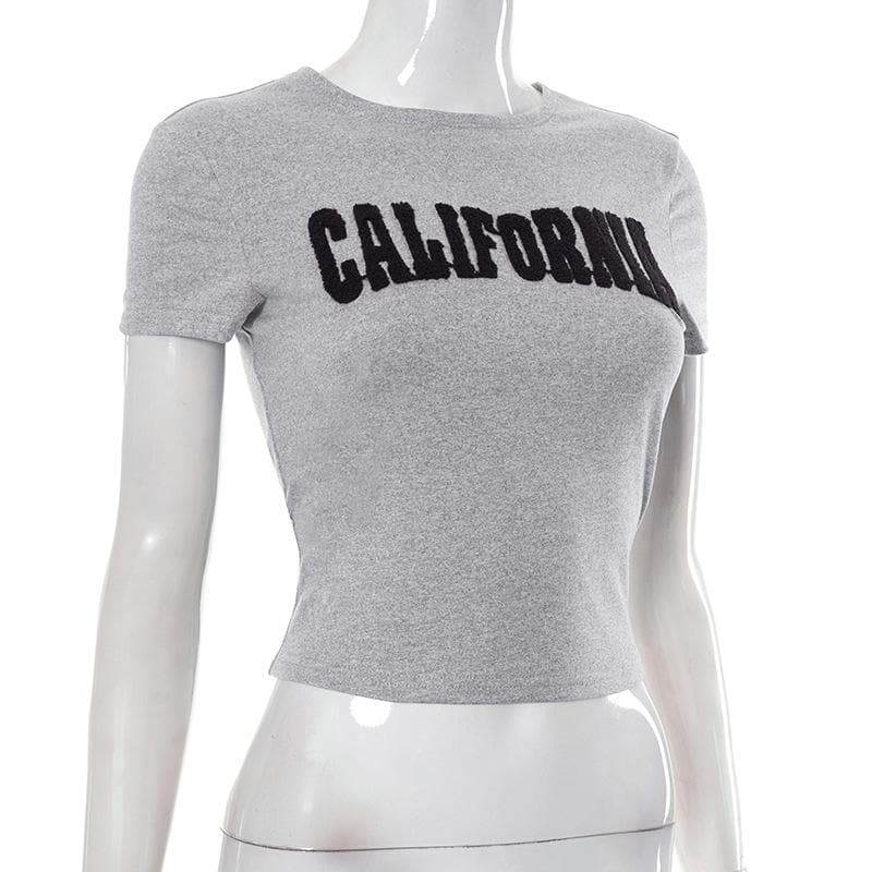 Embroidery contrast short sleeve crewneck crop top