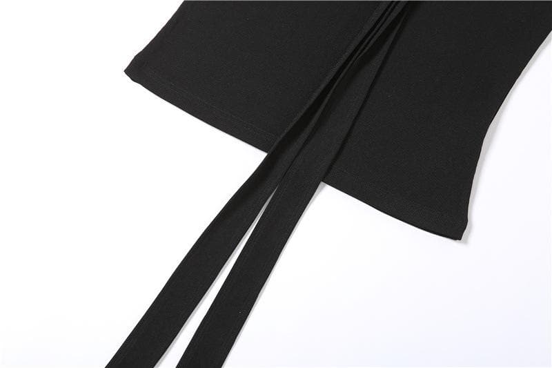 Halter backless hollow out ribbed cowl neck solid cut out top