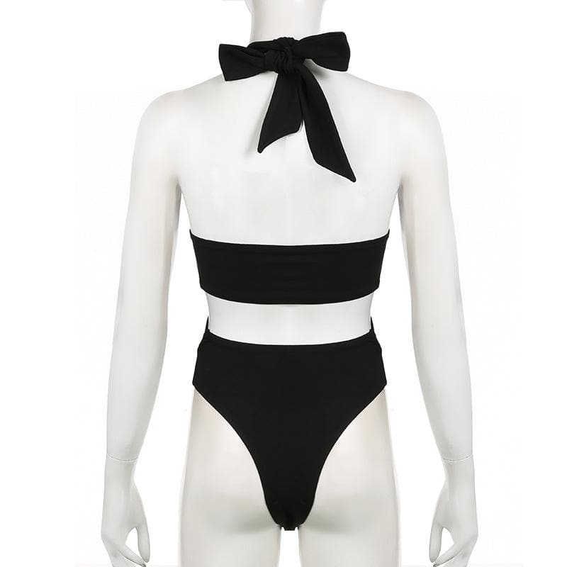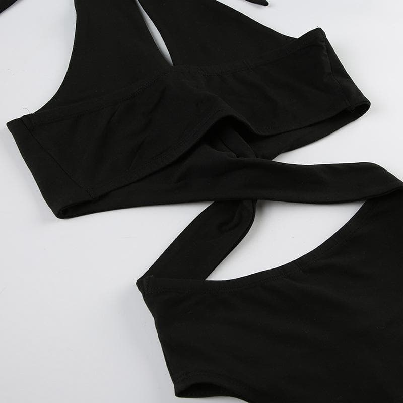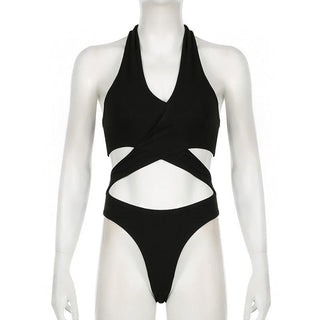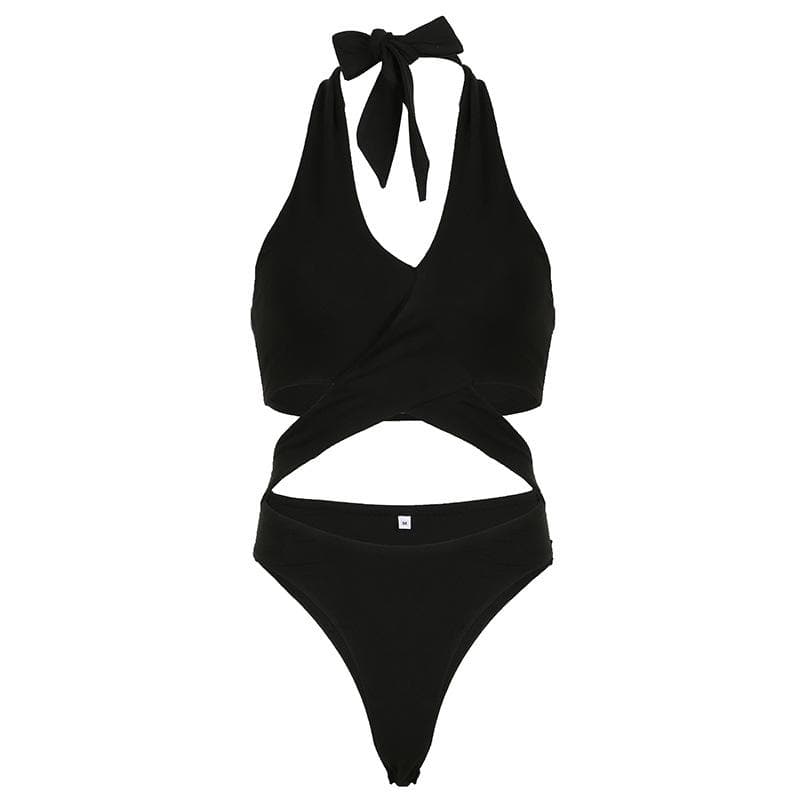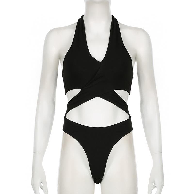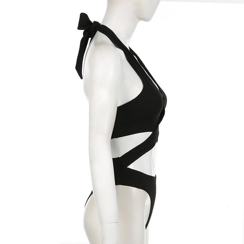 Halter cross front hollow out knotted bodysuit