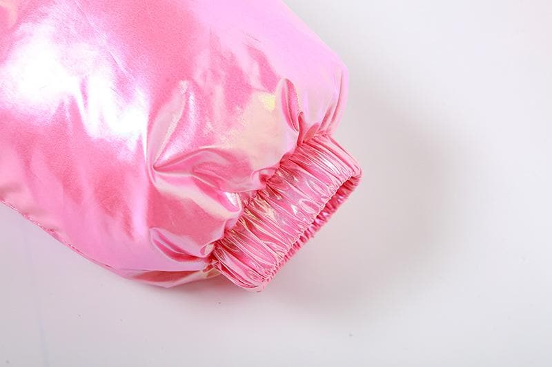 High neck metallic long sleeve zip-up solid metallic winter coat