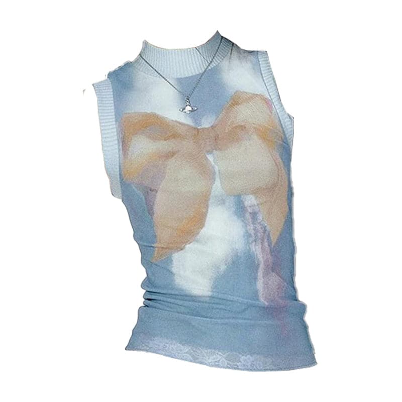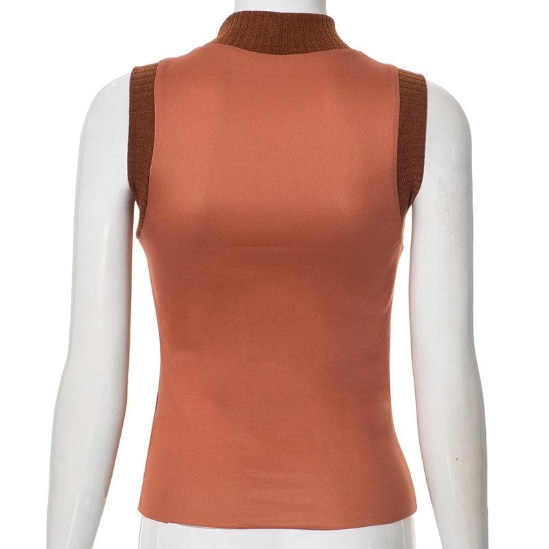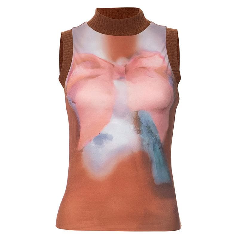 High neck sleeveless knitted patchwork print top