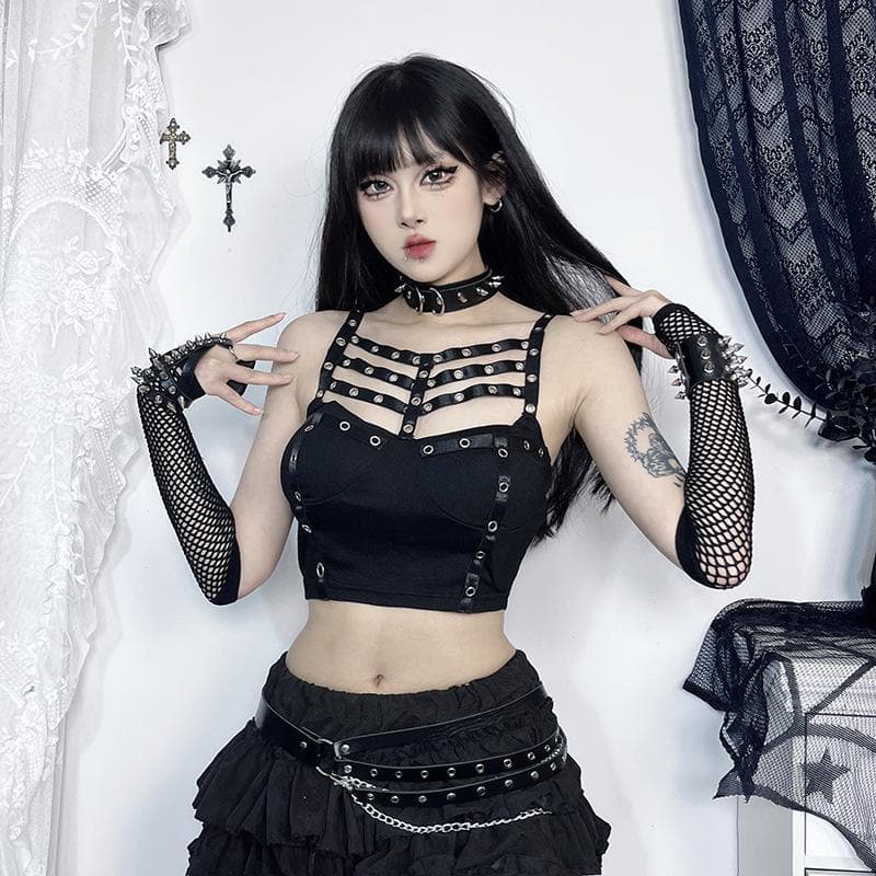 Hollow out backless solid sleeveless crop cut out top