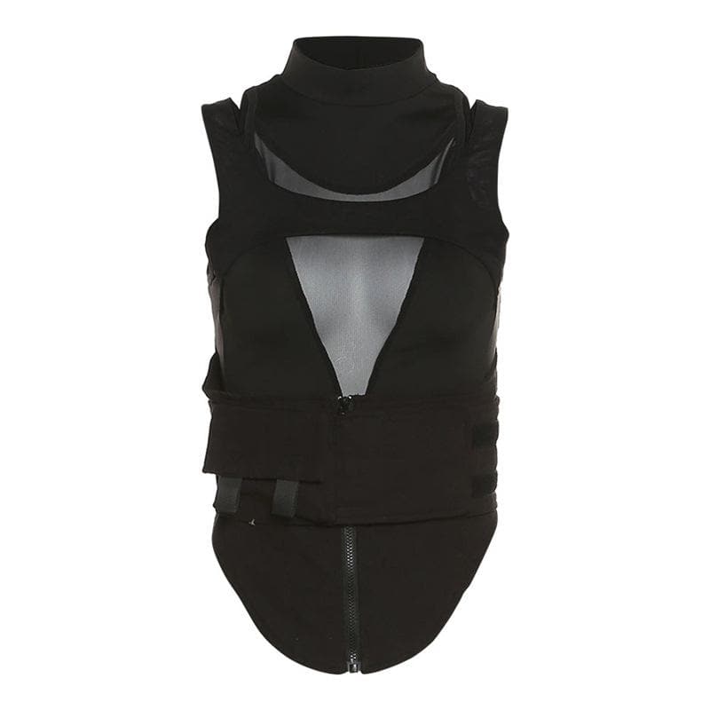 Hollow out high neck corset sleeveless zip-up crop cut out top