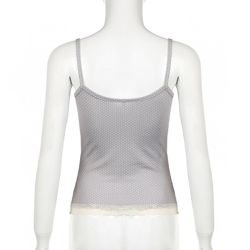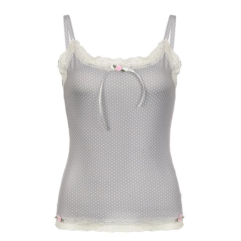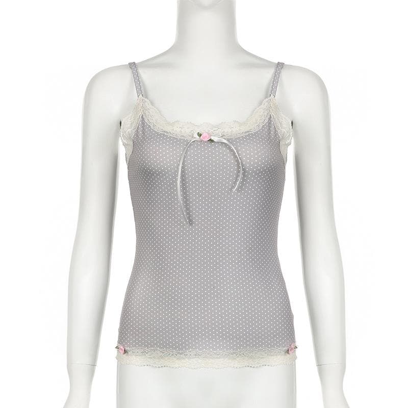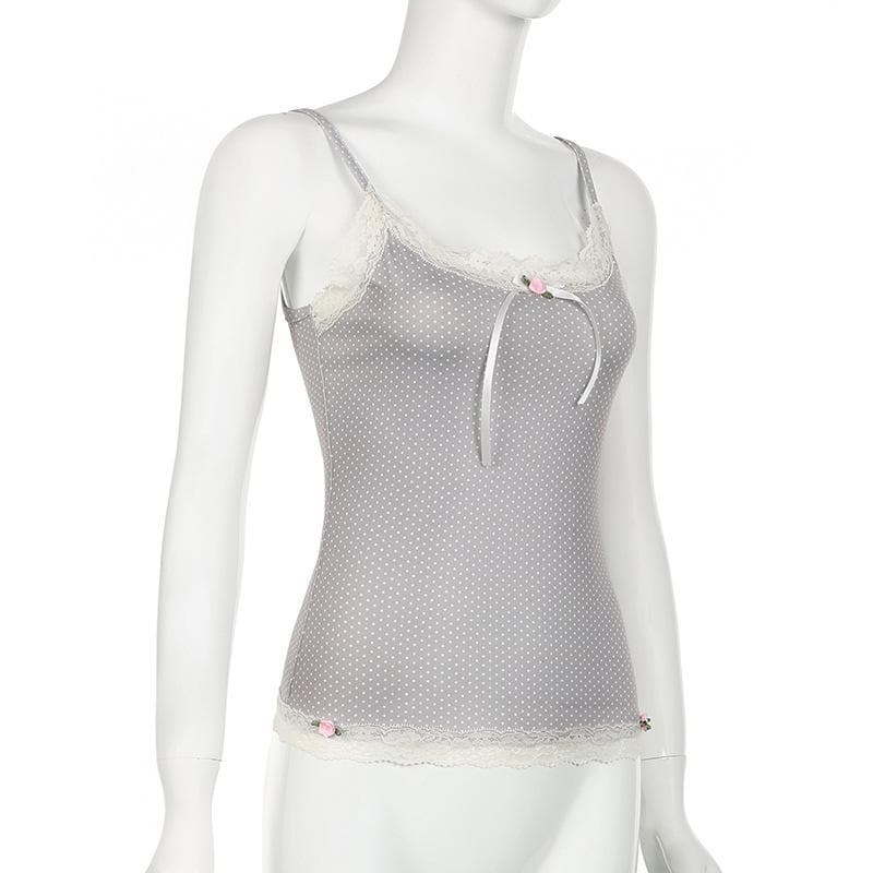 Lace hem polka dot rose applique cami top