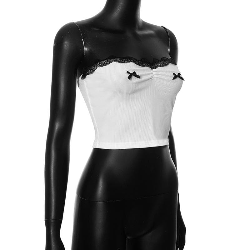 Lace hem ruched bowknot ribbed contrast backless tube top