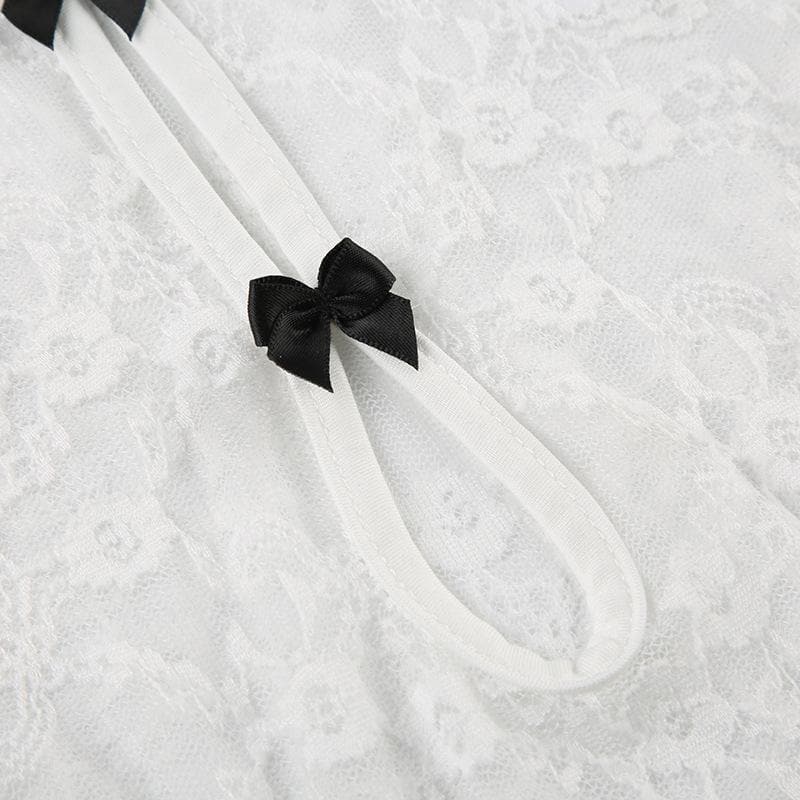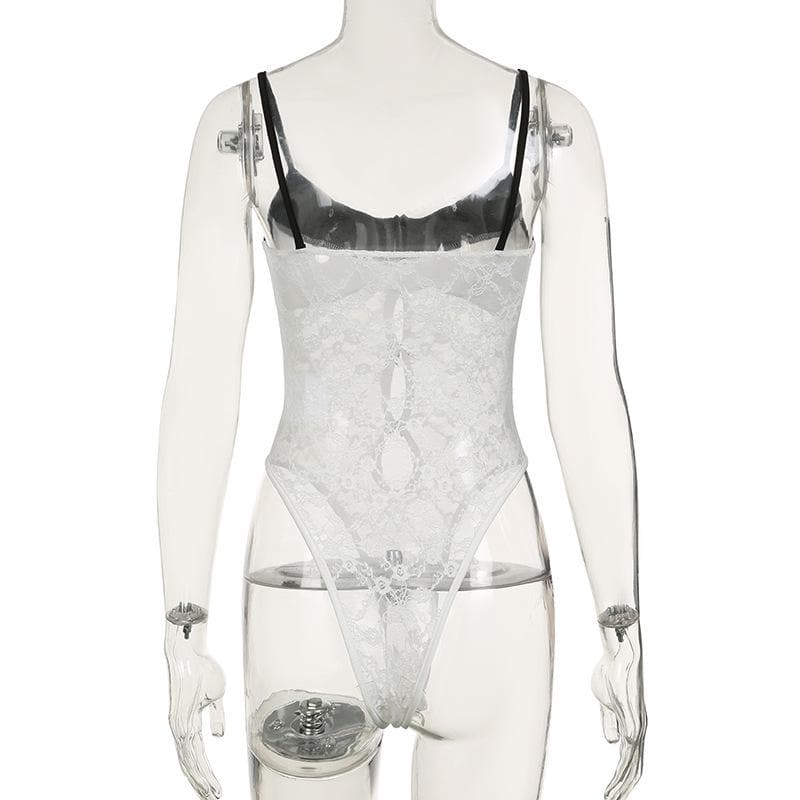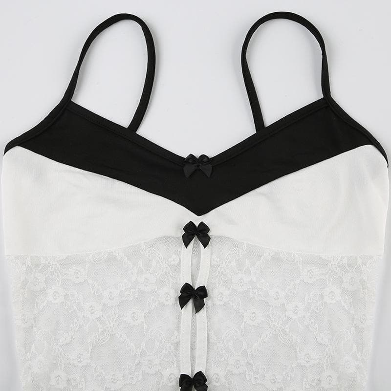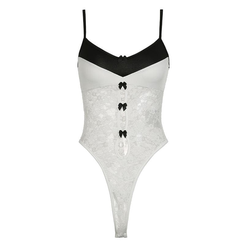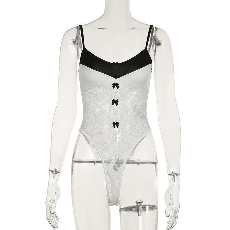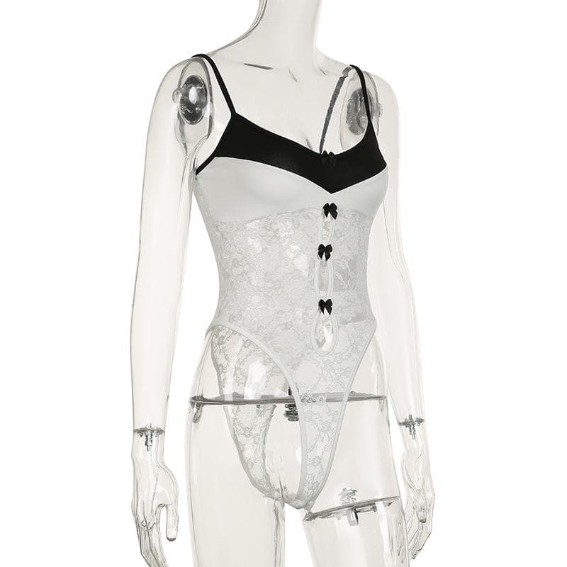 Lace patchwork bowknot cami bodysuit