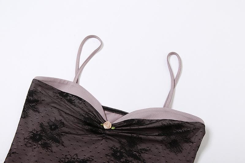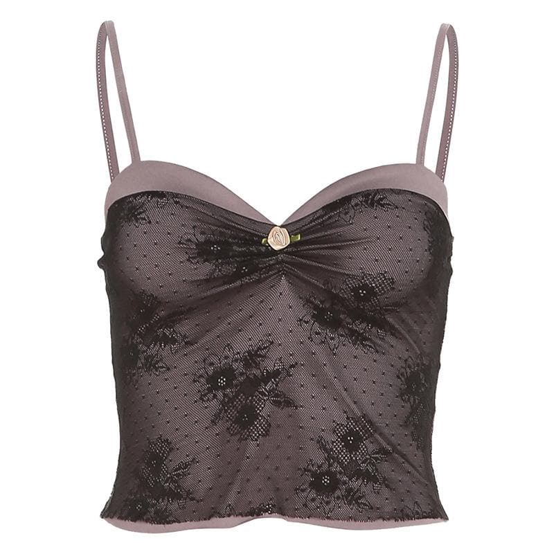 Lace ruched sweetheart neck contrast cami top