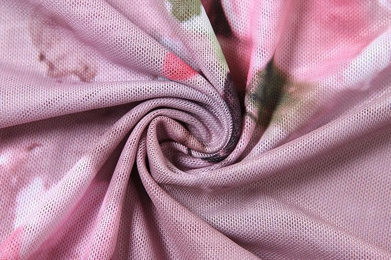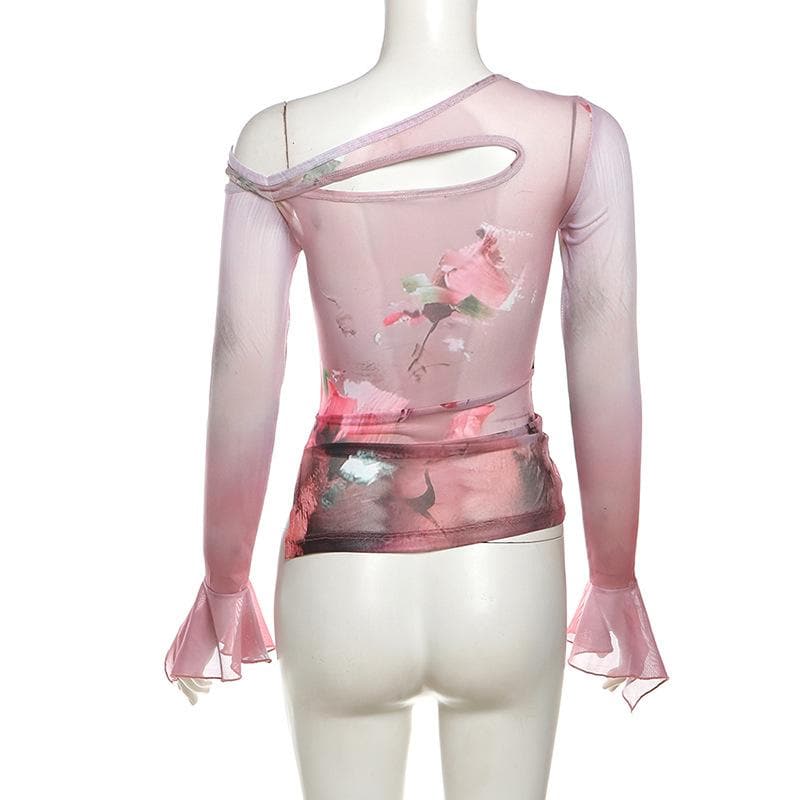Long flared sleeve sheer mesh print top