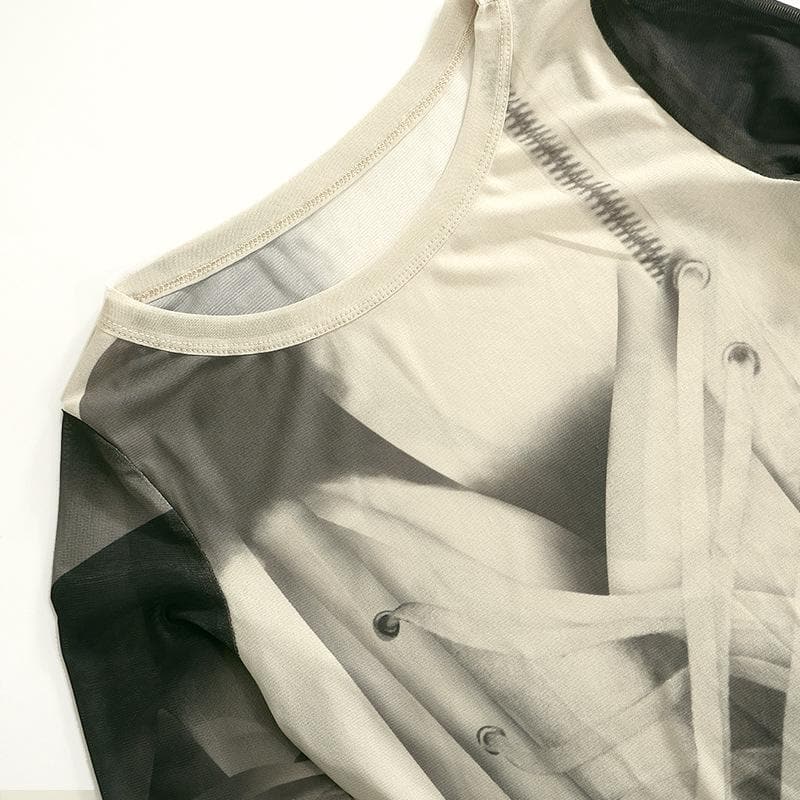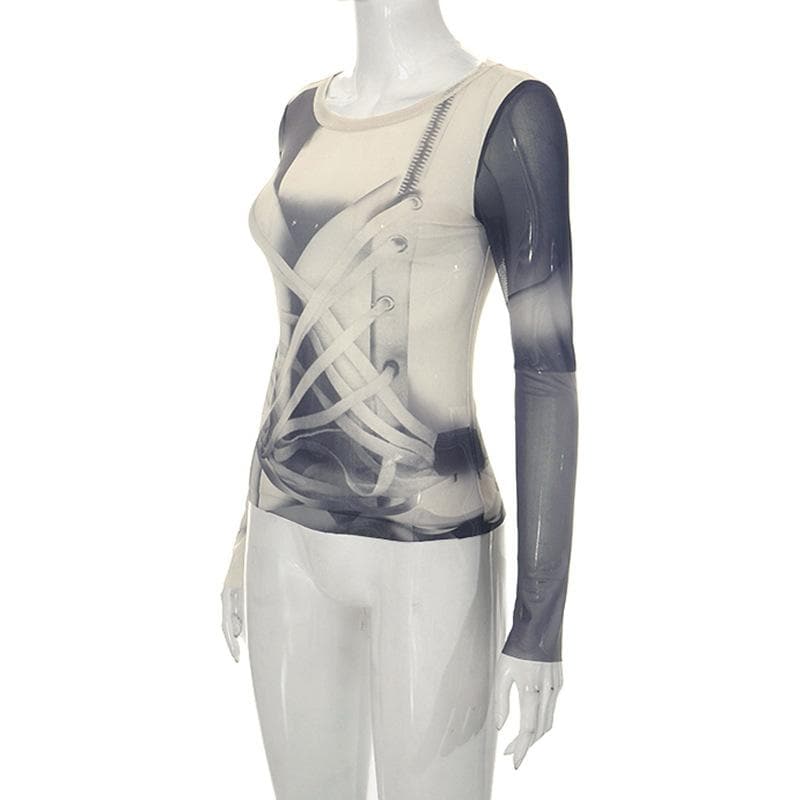 Long sleeve contrast sheer mesh top