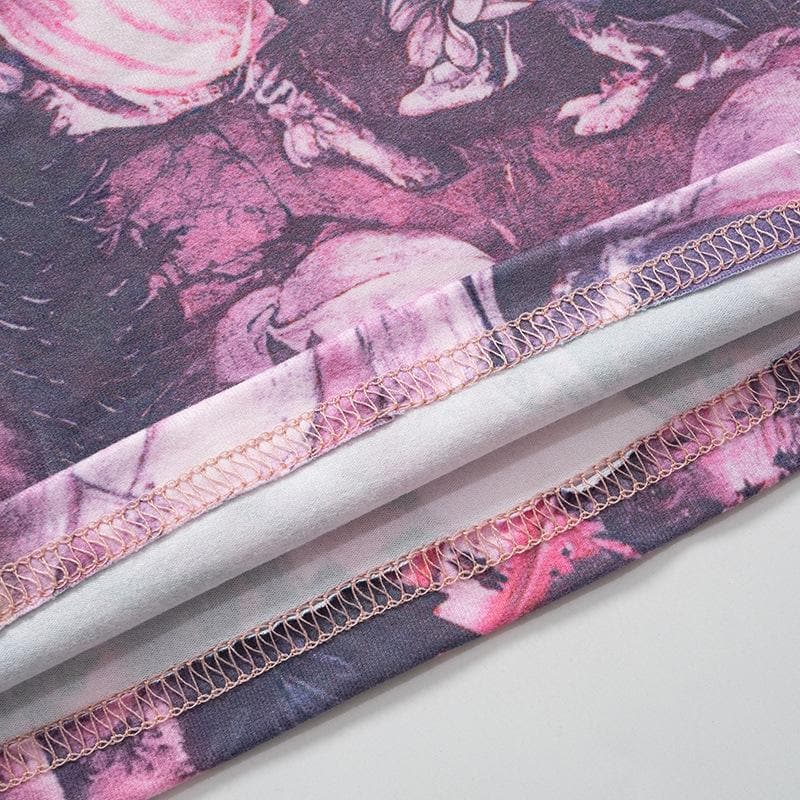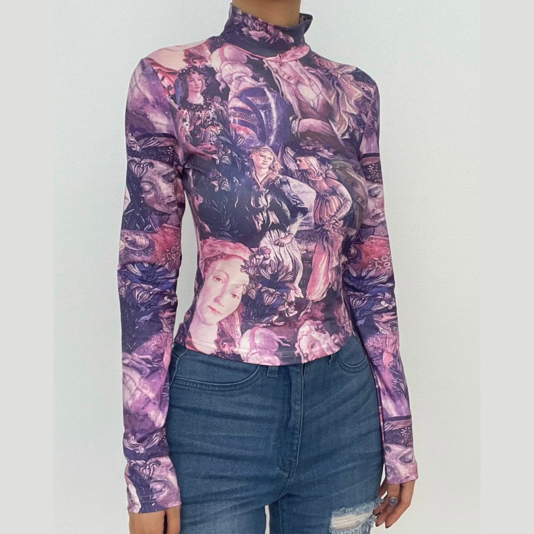 Long sleeve high neck abstract print contrast crop top