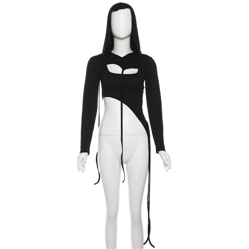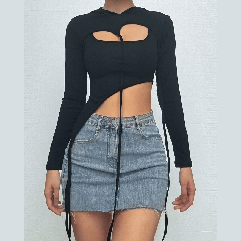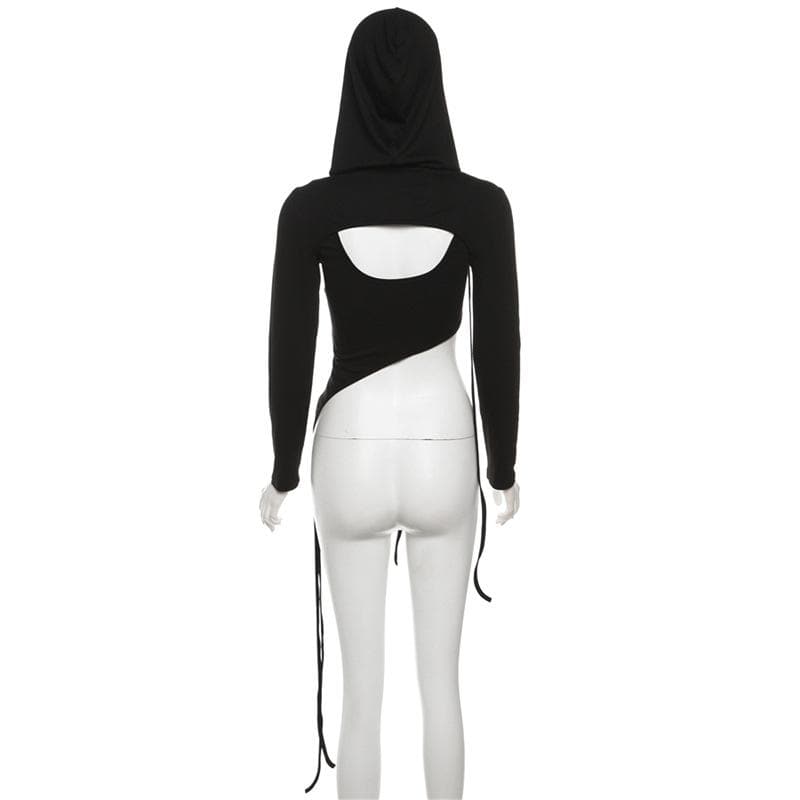 Long sleeve hoodie irregular shrug 2 piece tank top