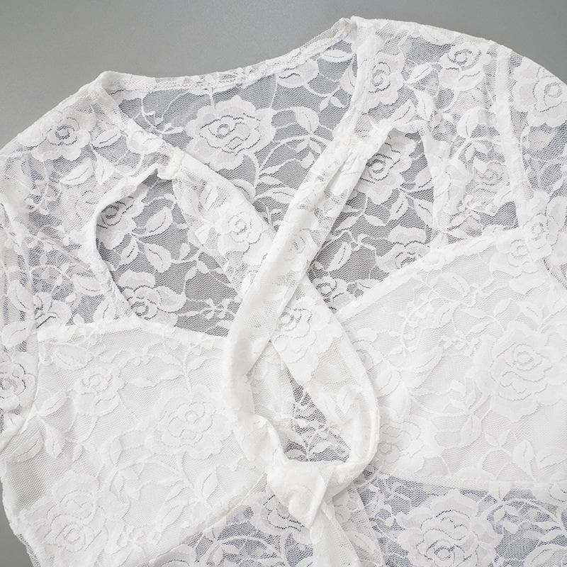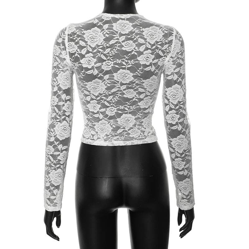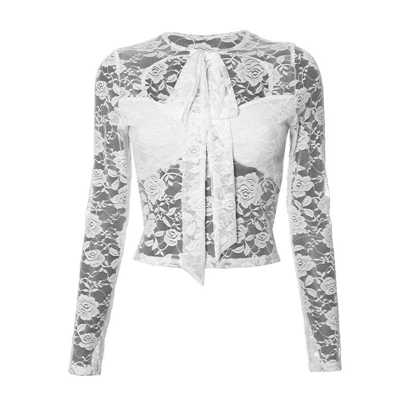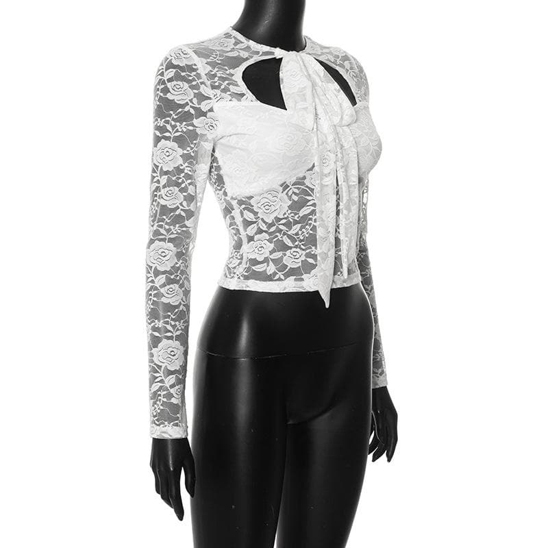 Long sleeve lace knotted crop top