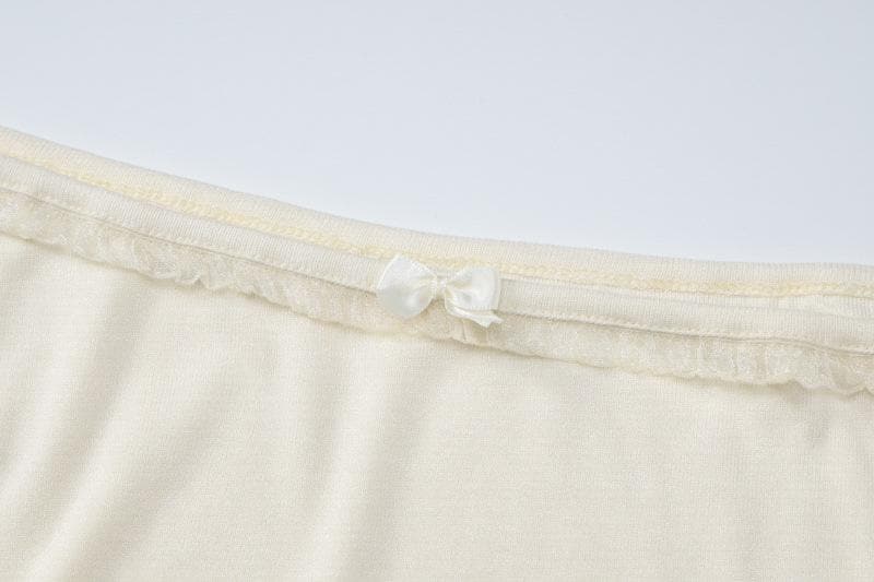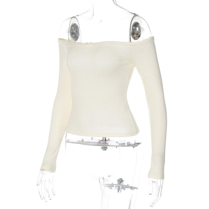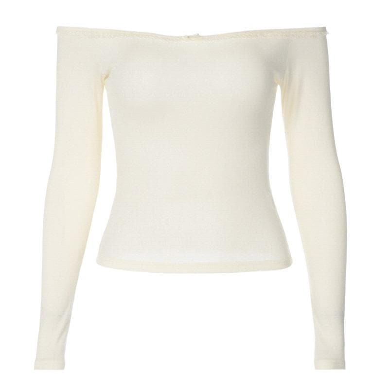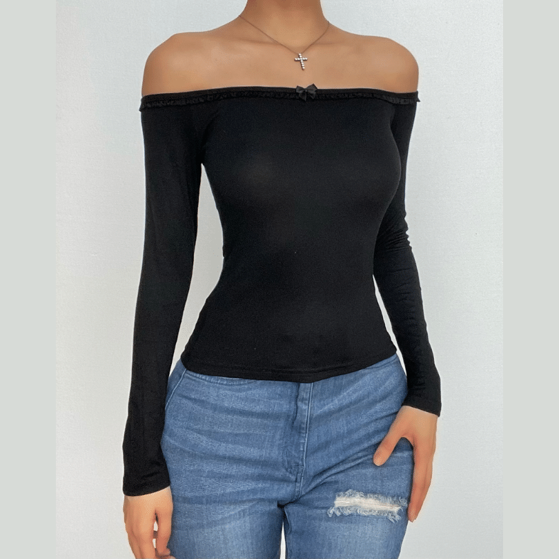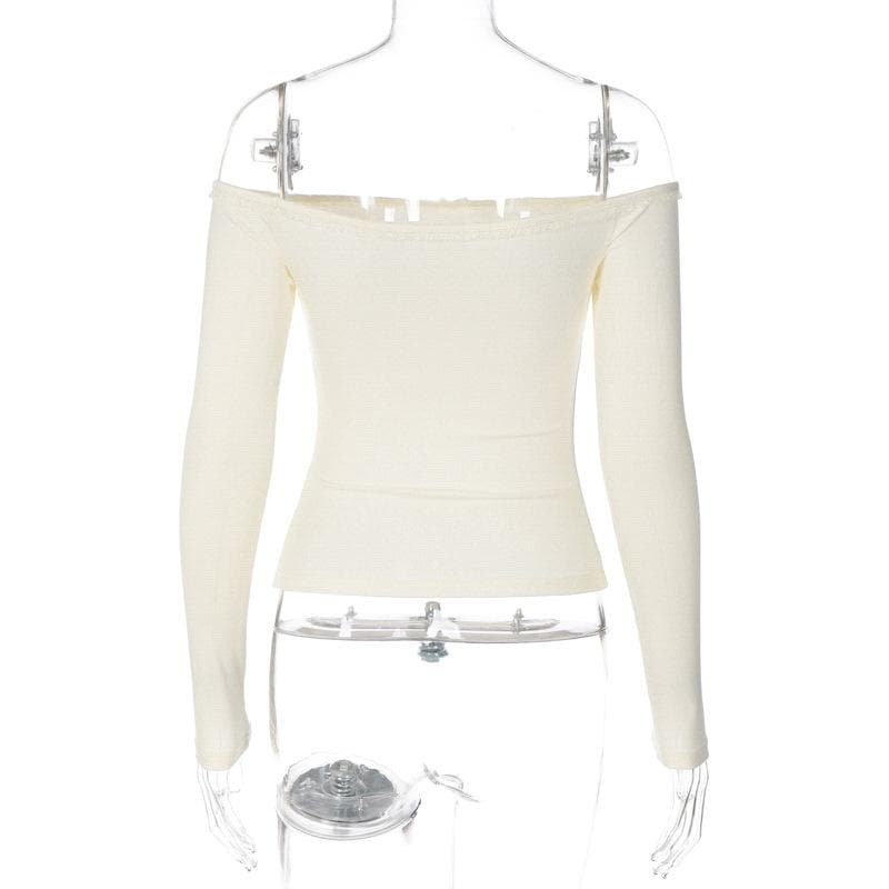 Long sleeve off shoulder bowknot lace hem backless top