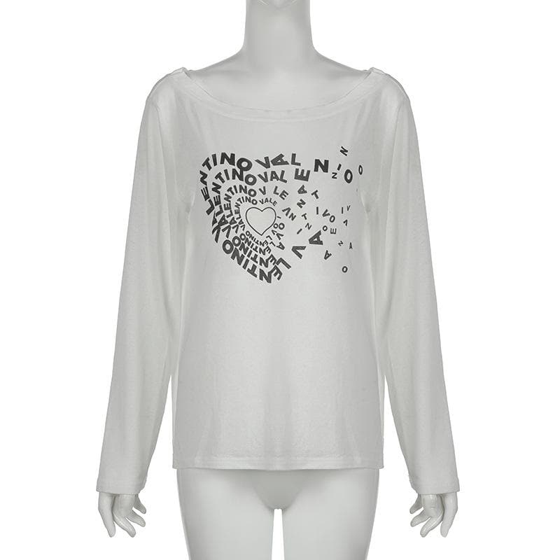 Long sleeve off shoulder letter print top