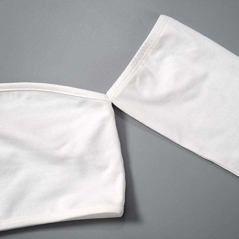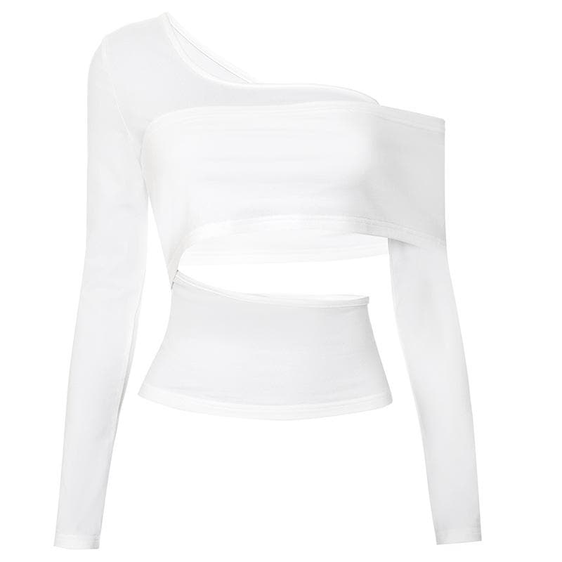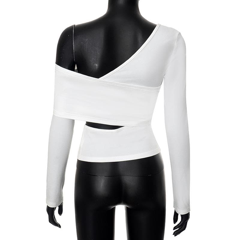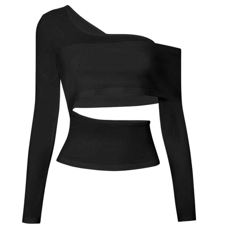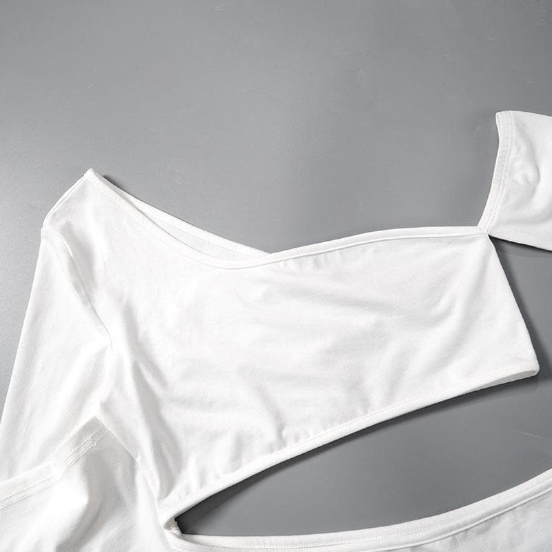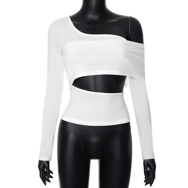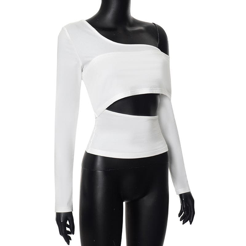 Long sleeve one shoulder hollow out solid irregular backless cut out top