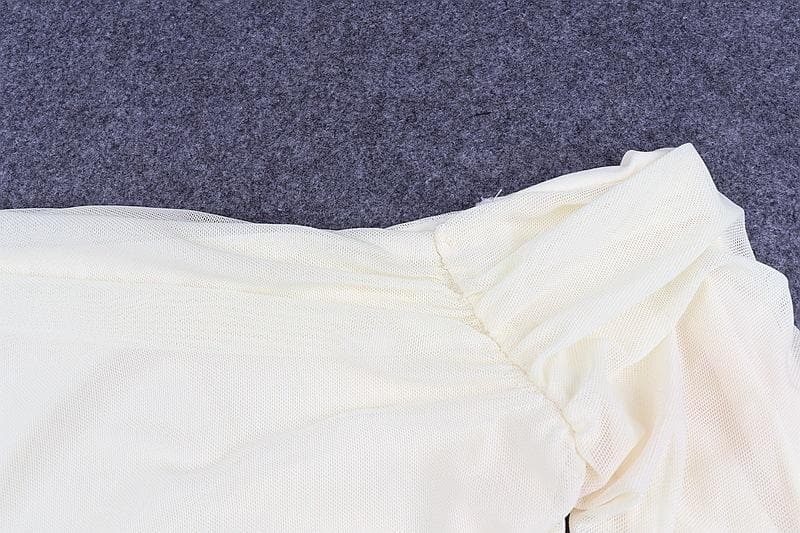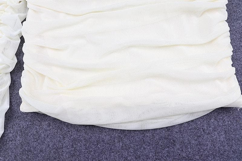 Double layered mesh off shoulder ruched long sleeve solid crop top