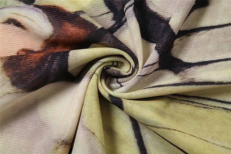 Off shoulder flared sleeve mesh print ruffle top