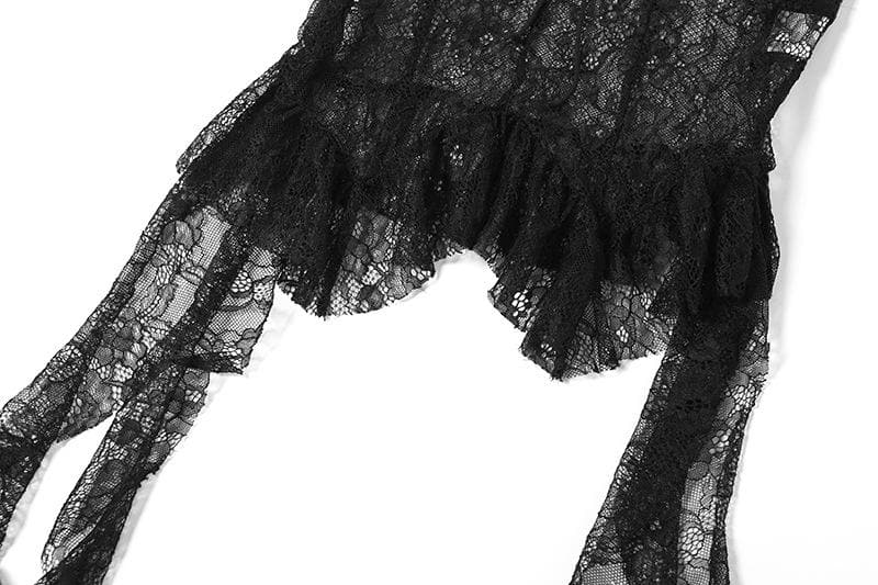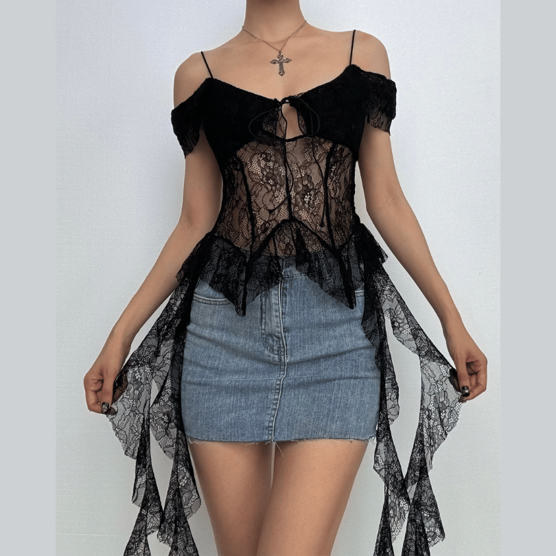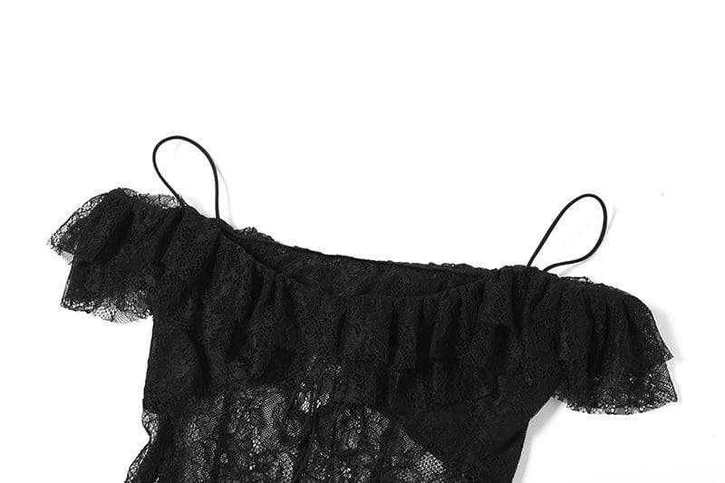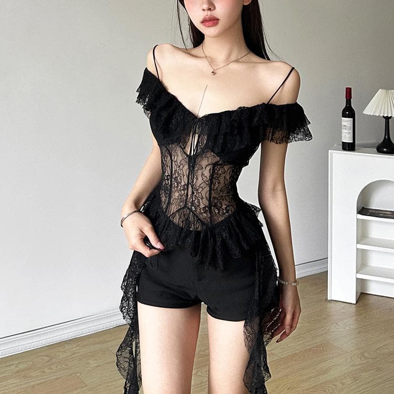Off shoulder lace ruffle hollow out cut out top