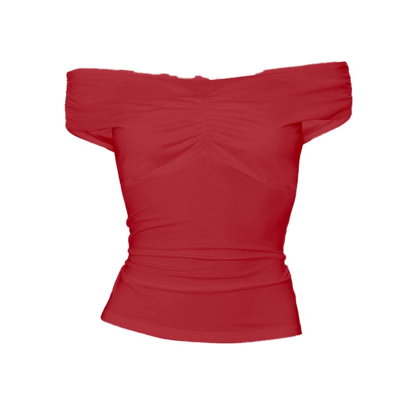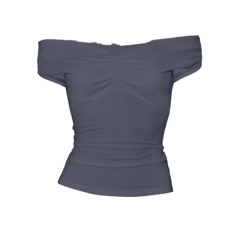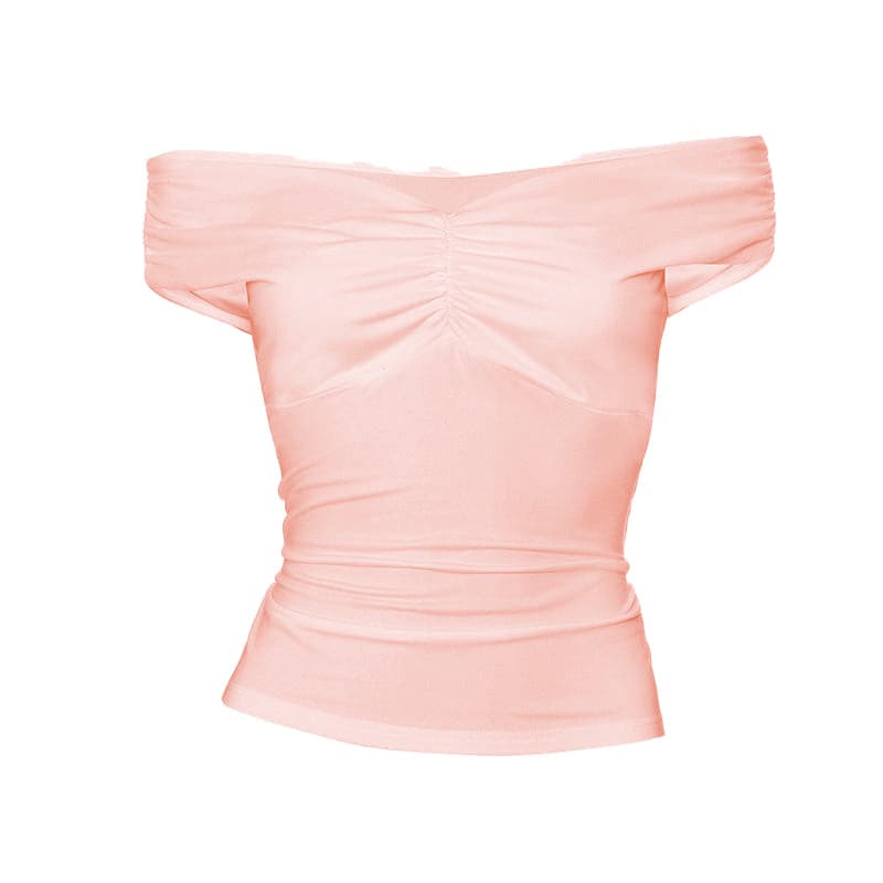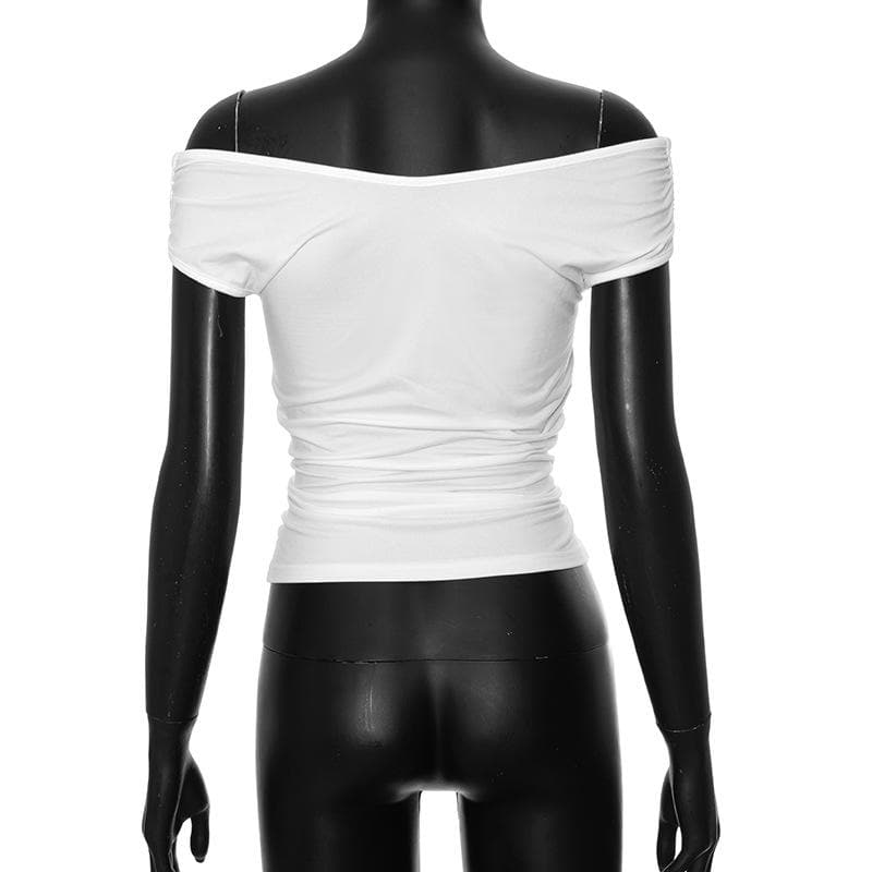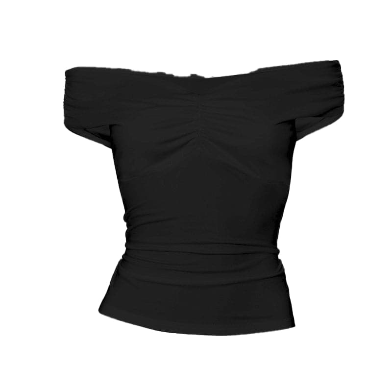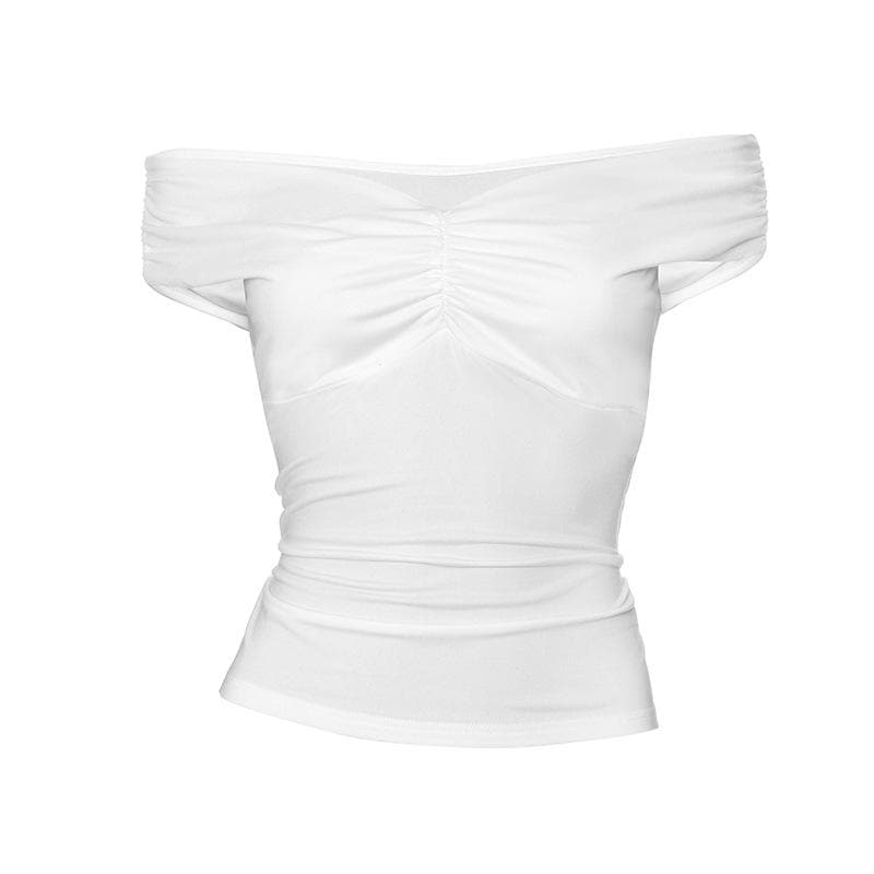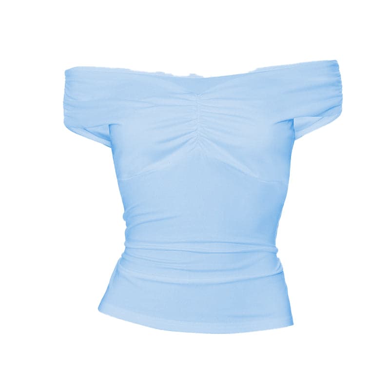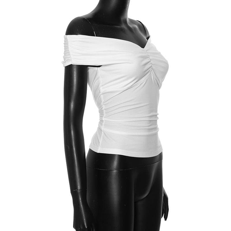 Off shoulder ruched v neck solid top