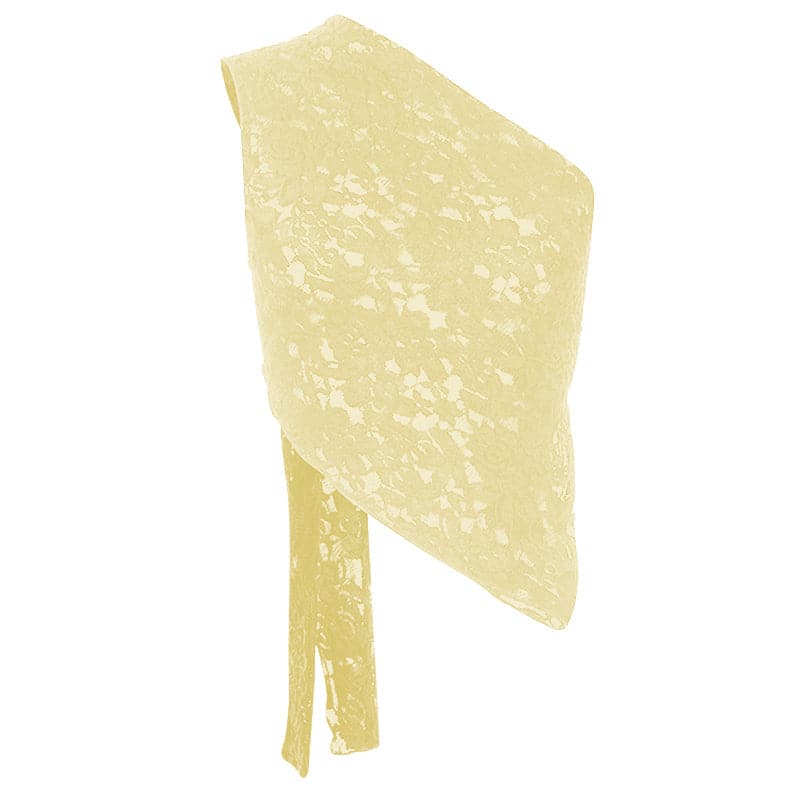 One shoulder backless lace see through self tie top
