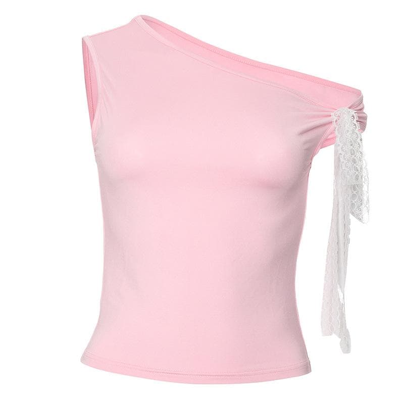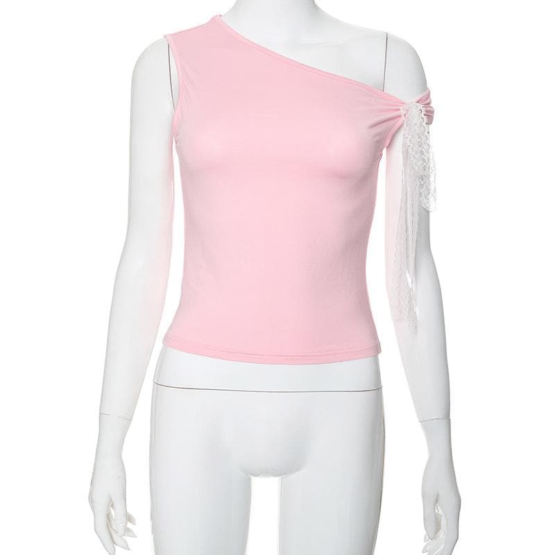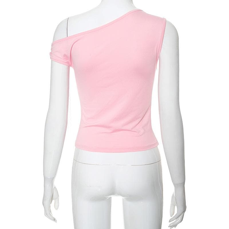 One shoulder irregular bowknot ruched top