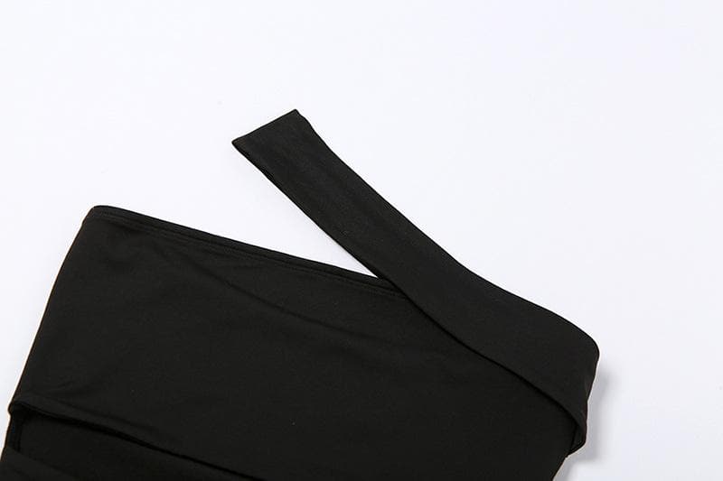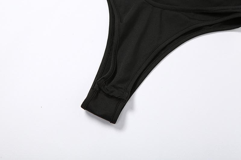 One shoulder solid irregular hollow out backless bodysuit