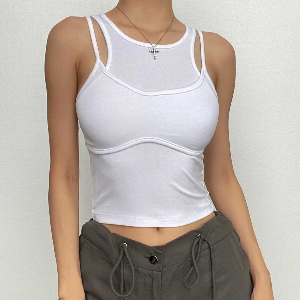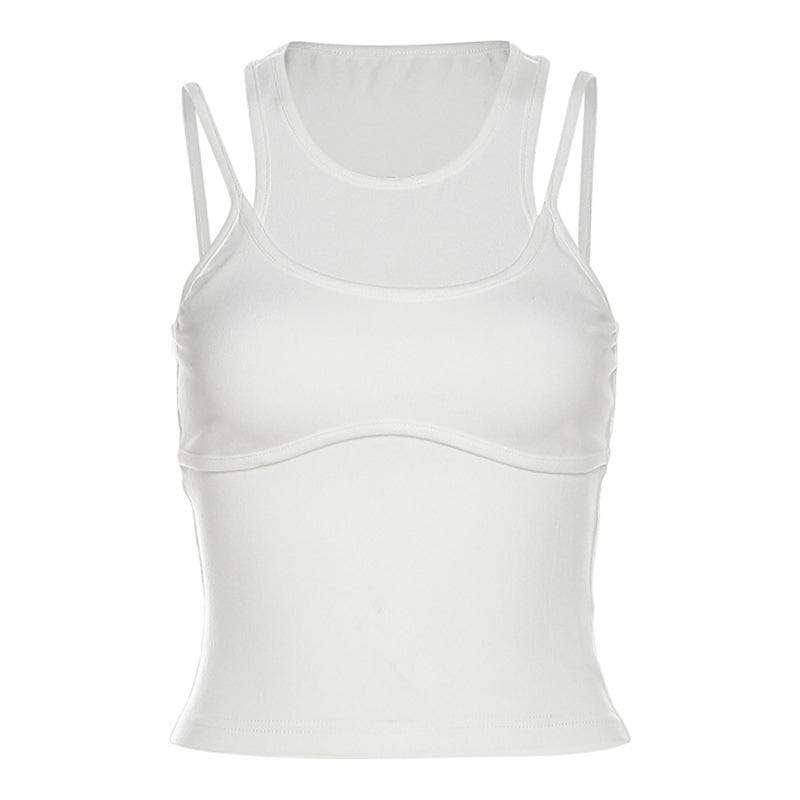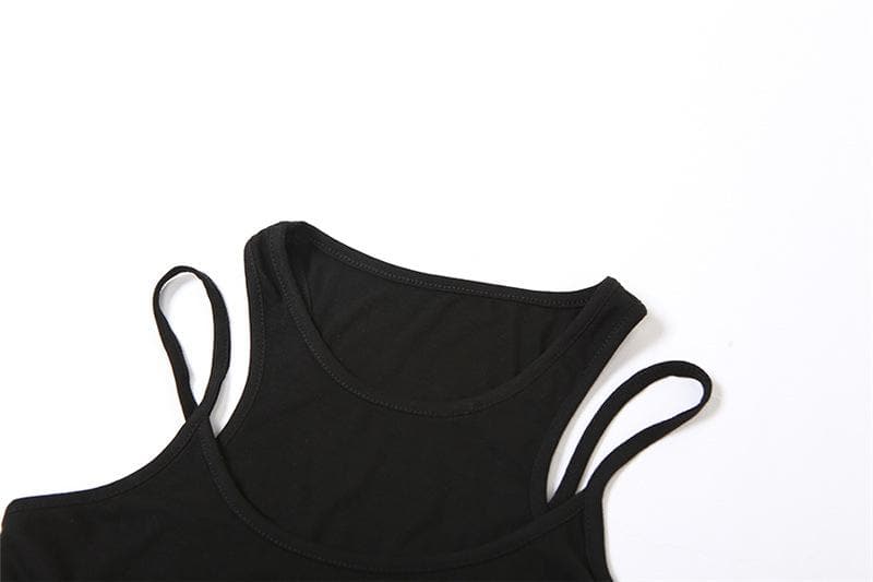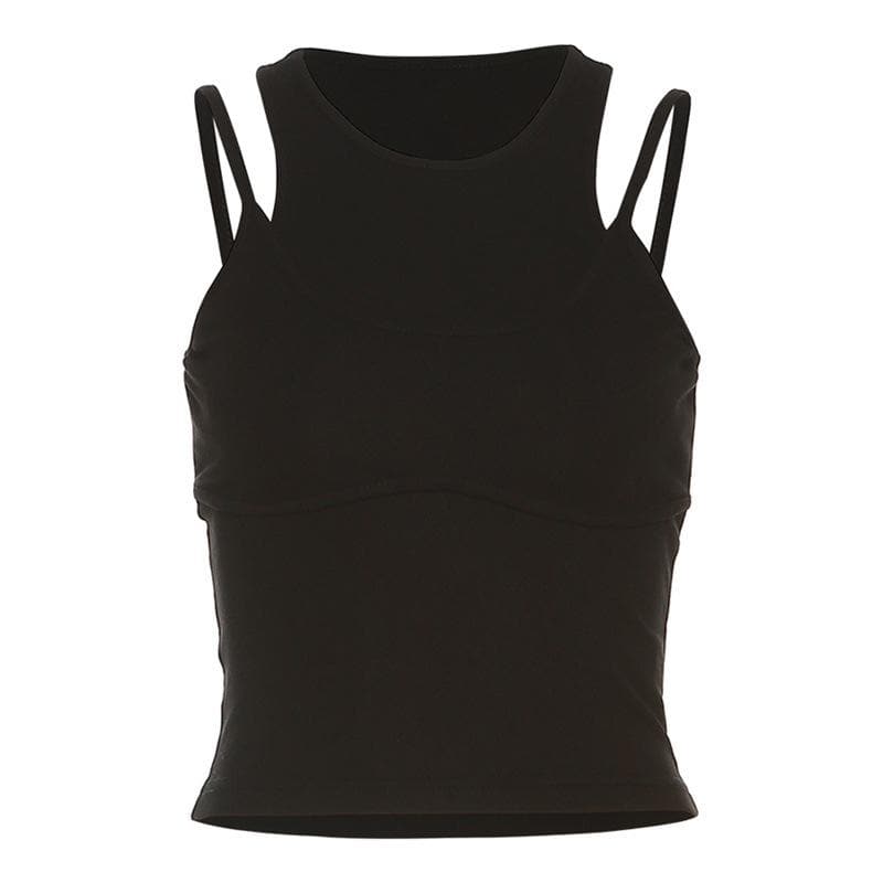 Patchwork sleeveless solid round neck crop top
